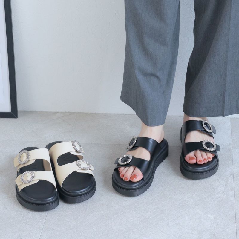 ・2つのキラキラビジューバックルが輝く主役級アイテム!