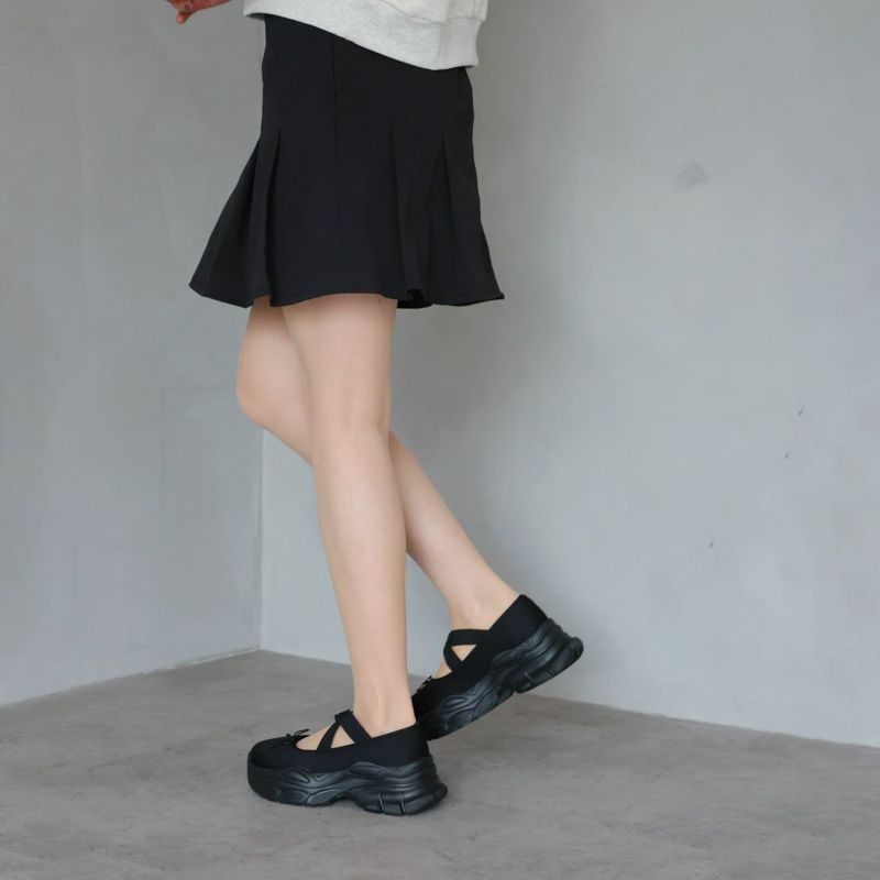・ぽってりとしたボリュームソールとクロスゴムがポイントの厚底バレエシューズスニーカー