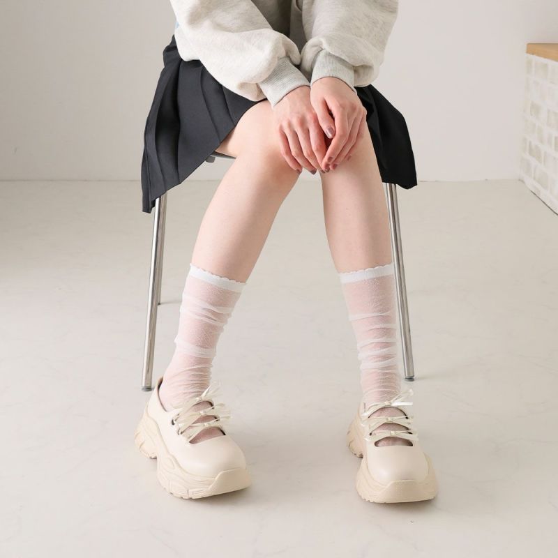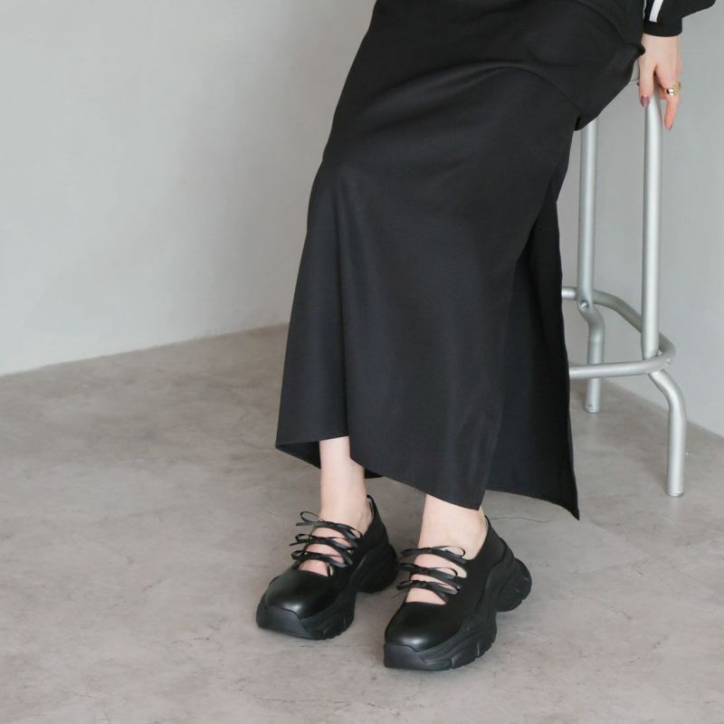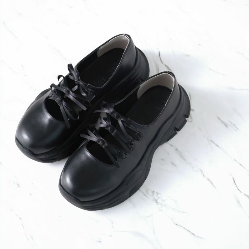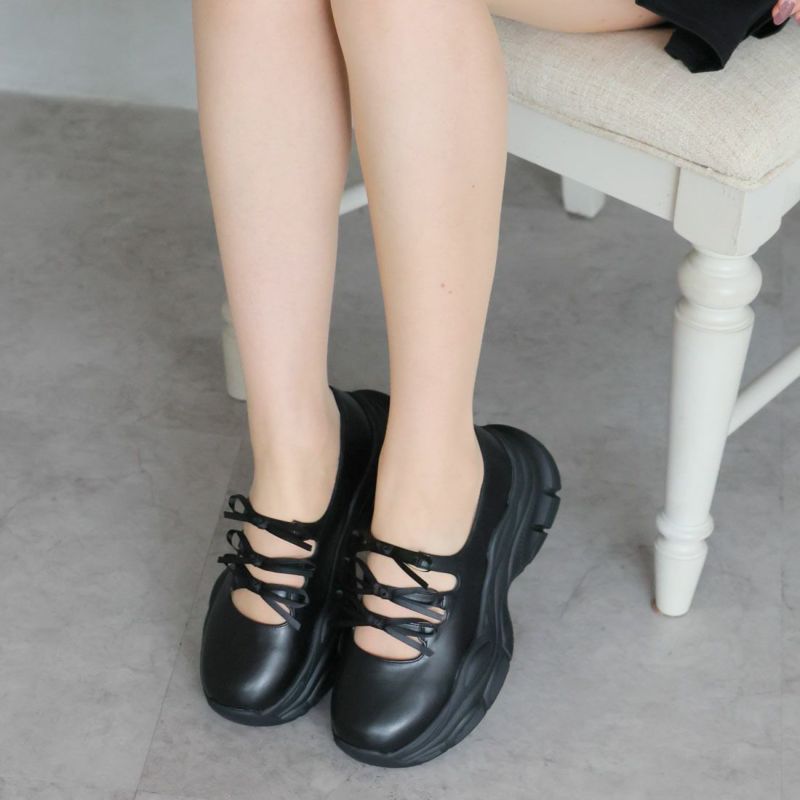 ・ぽってりとしたボリュームソールと3つのミニリボンがポイントの厚底スニーカー