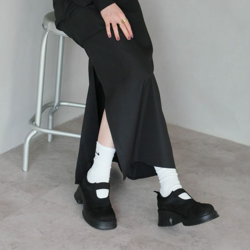 ・ぽってりとしたボリュームソールとゴムデザインがポイントの厚底シューズ