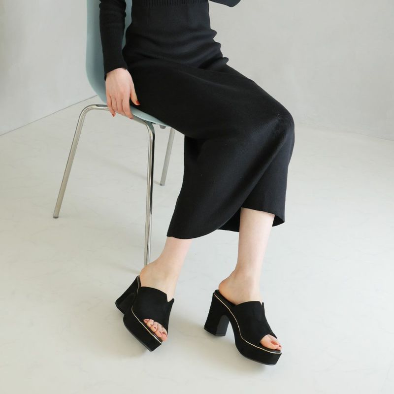・スリットデザインがアクセントの厚底ミュールサンダル!