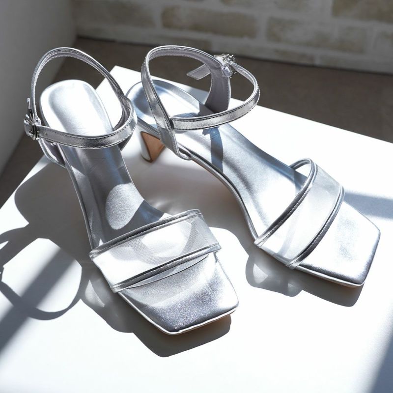 ・透け感のあるチュールが目を引くシアーストラップサンダル!