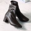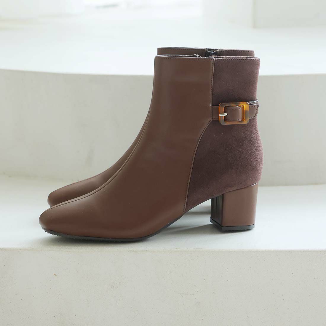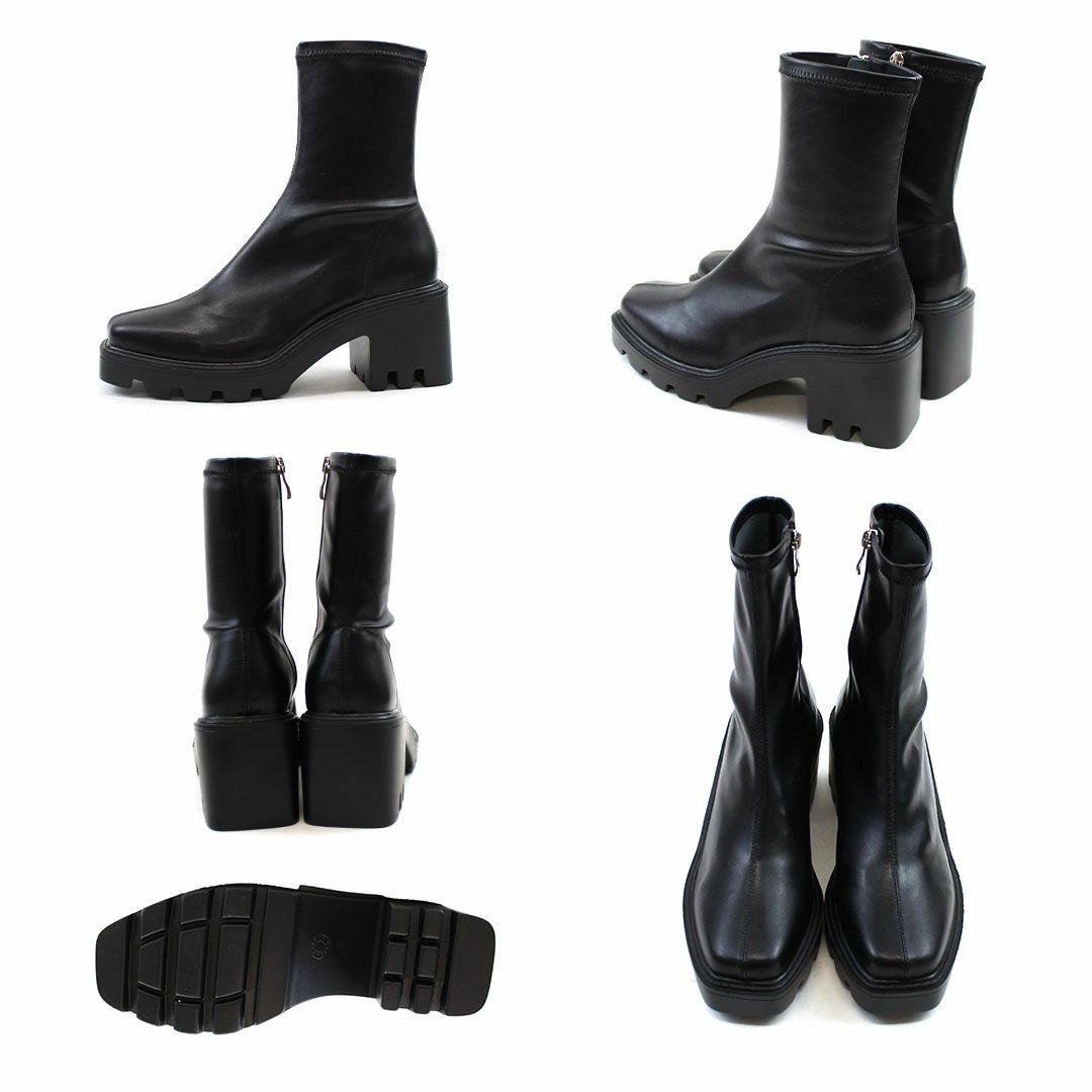 VIVIAN 【2025年新色追加】スクエアトゥプレートヒールストレッチショートブーツ