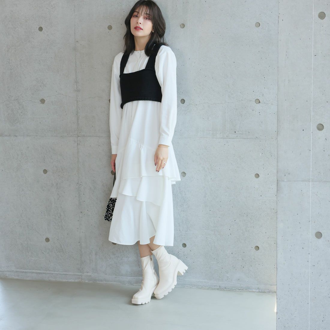 VIVIAN スクエアトゥ厚底ストレッチショートブーツ