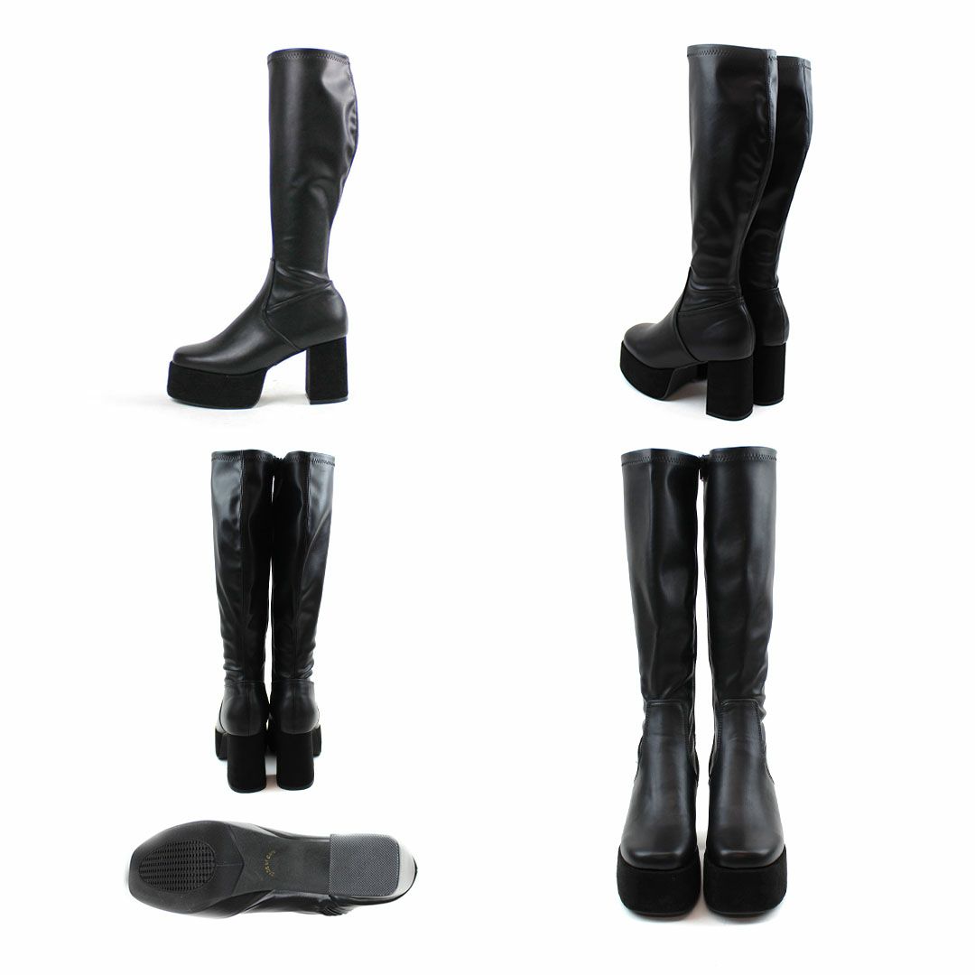 VIVIAN スクエアトゥ厚底ストレッチロングブーツ