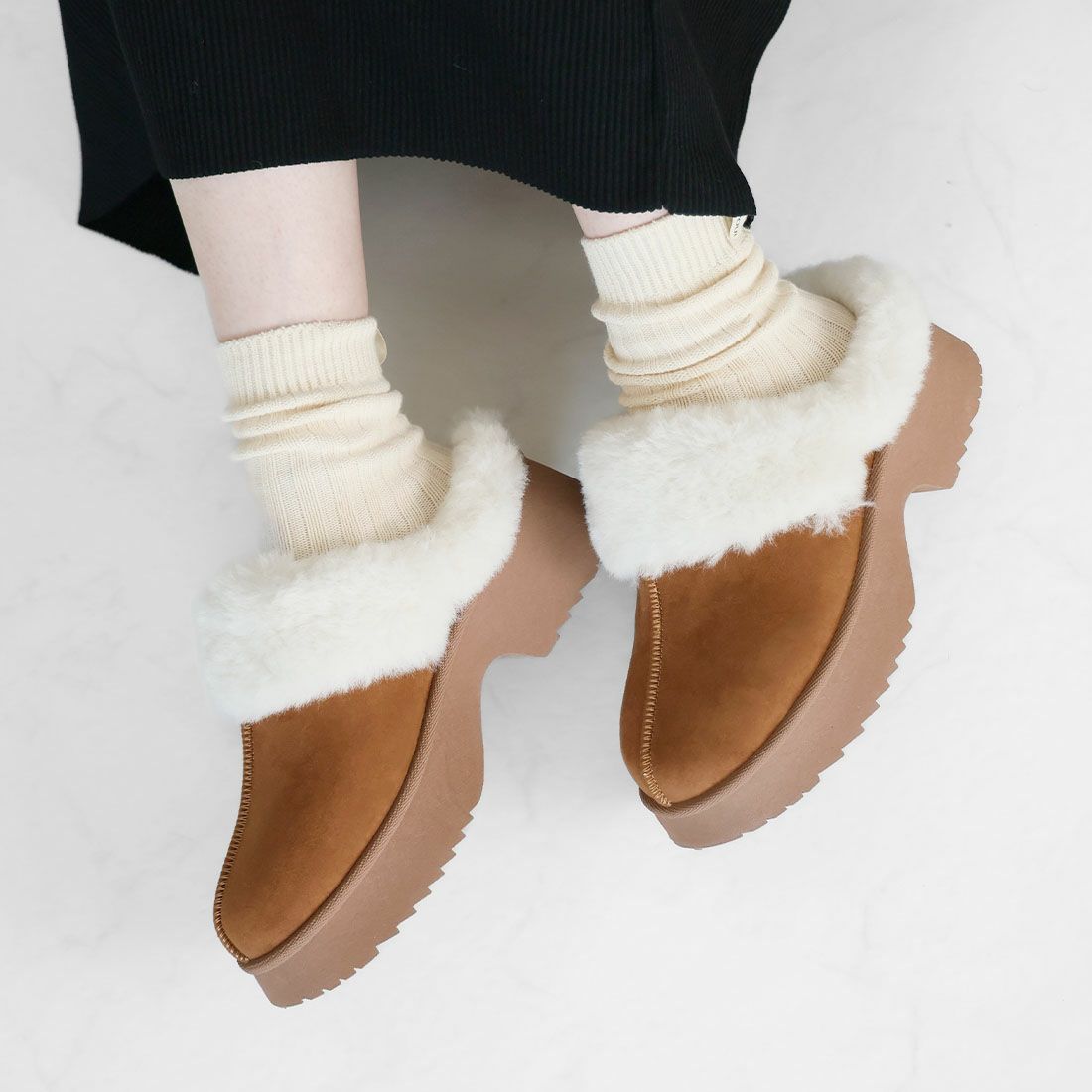 VIVIAN もふぽか厚底チャンキーヒールサボムートンブーツ