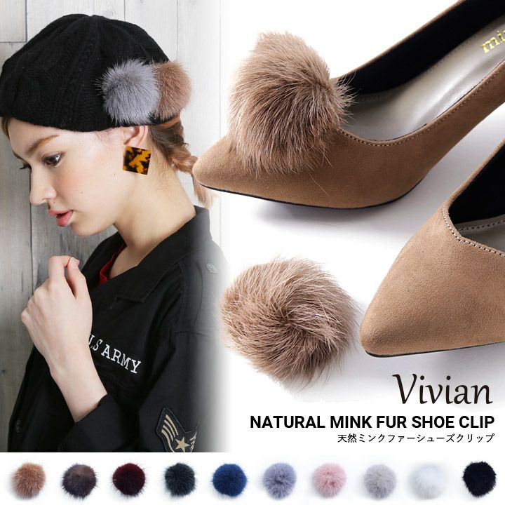 裏にクリップが付いた取り外しできる、シューズクリップアクセサリー(単品)。シューズだけではなく、帽子やバックにも使用できるので、コーデ力抜群!天然ミンクのフワフワ感は、フェイクファーとは比べ物にならない手触りです。