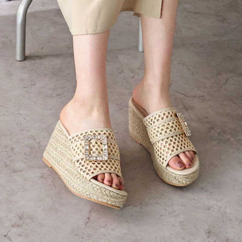 ・キラキラビジューバックルが輝く主役級アイテムのウェッジサンダル!