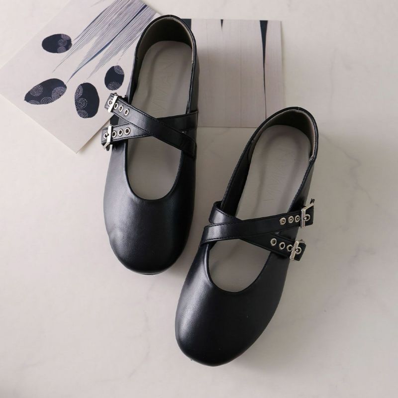 ・クロスのダブルベルトがアクセントのフラットシューズ!