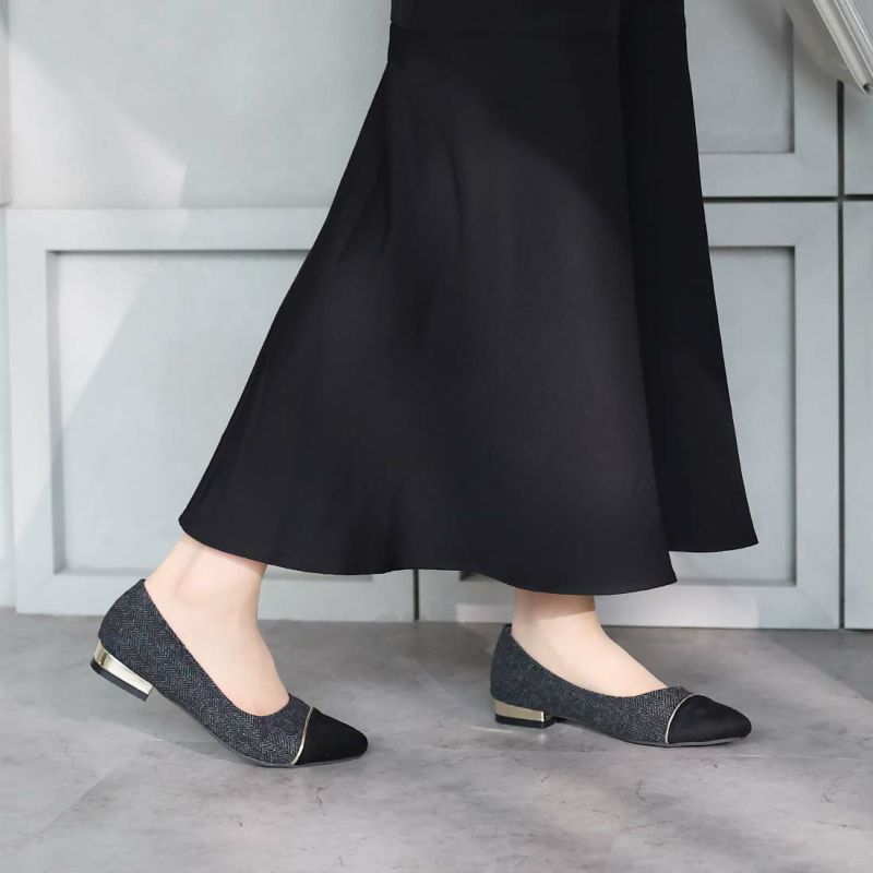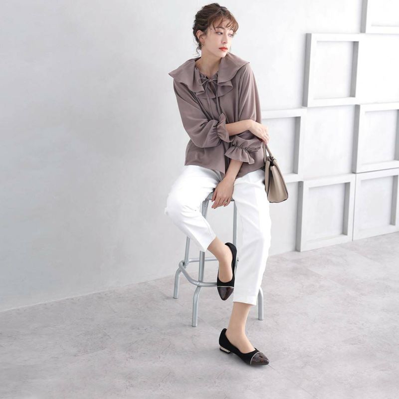 ・キチンと感のあるアーモンドトゥ×ローヒールでデイリーからオフィスまで、オンオフどんなシーンでも大活躍しそう。