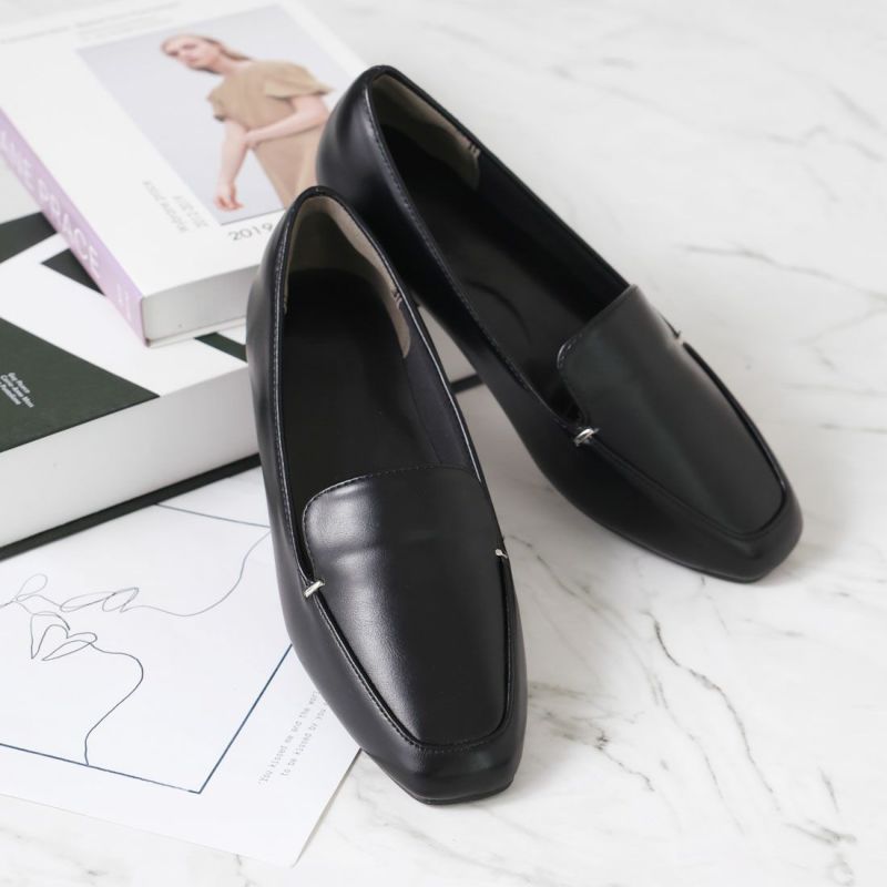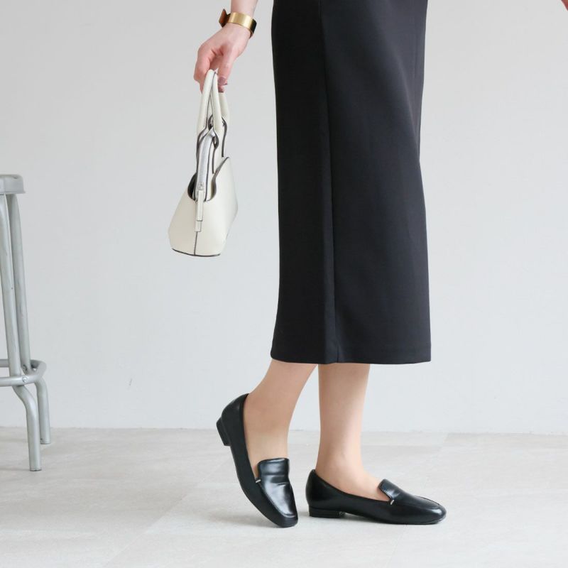 ・両サイドのメタルパーツがアクセントのローヒールローファー