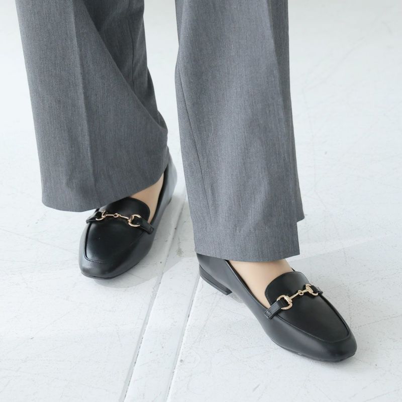 ・定番デザインのビット付きローヒールローファーで足元にキチンと感をプラス