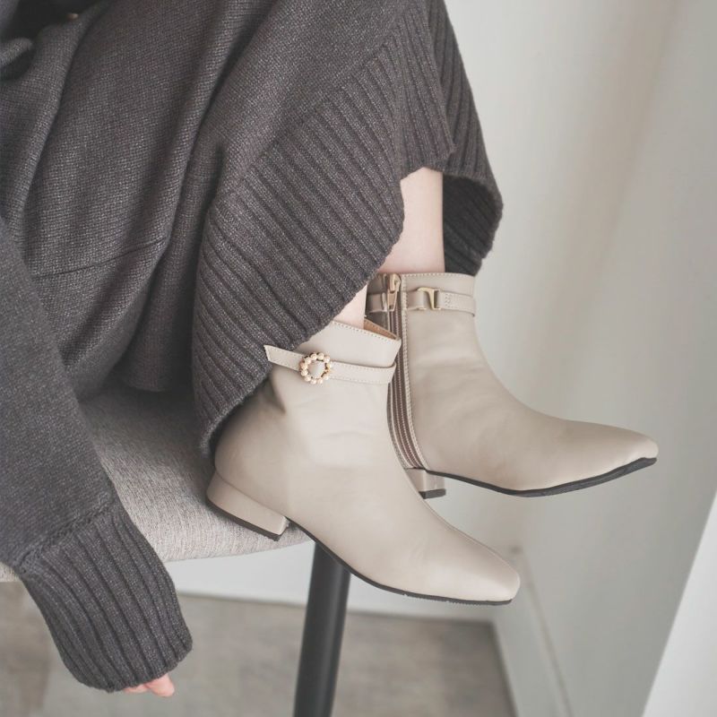 ・上品なパールリングバックルでエレガントな足元を演出