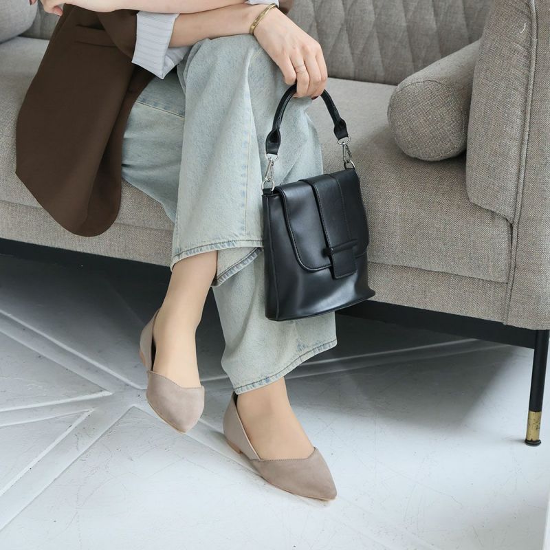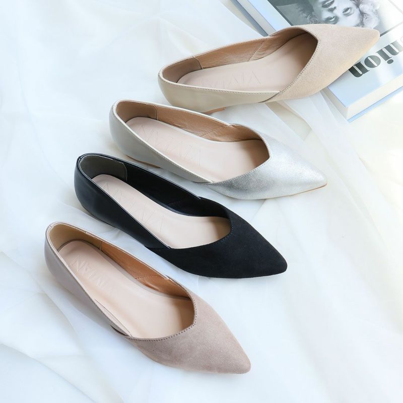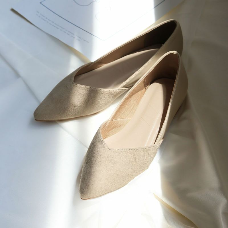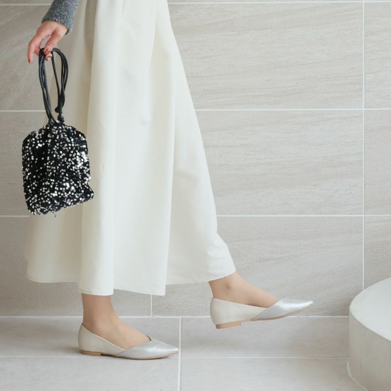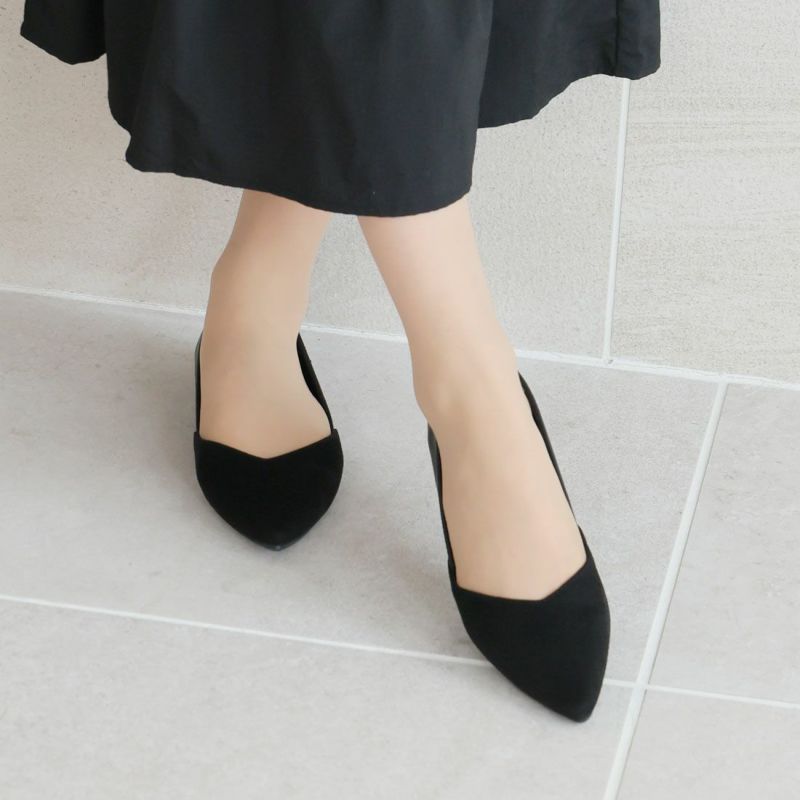 ・ポインテッドトゥ×Vカットで甘くなりすぎないこだわりフォルム。