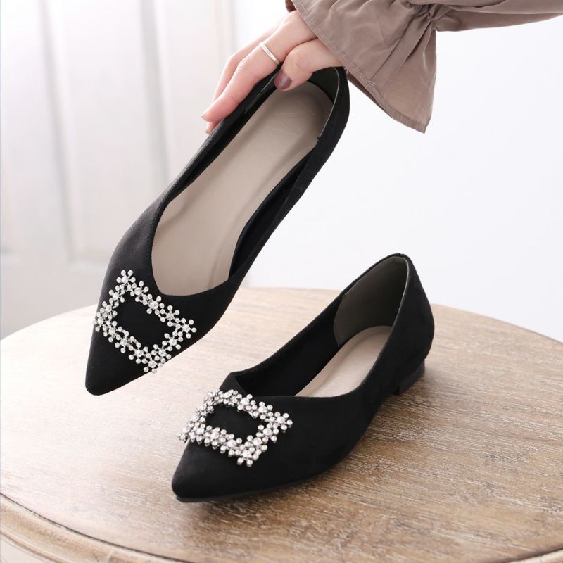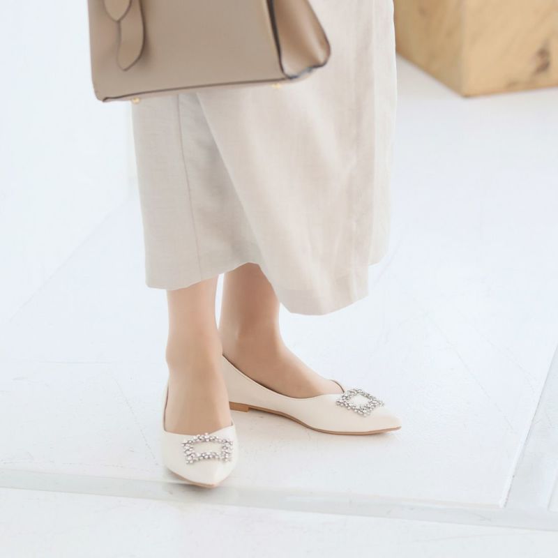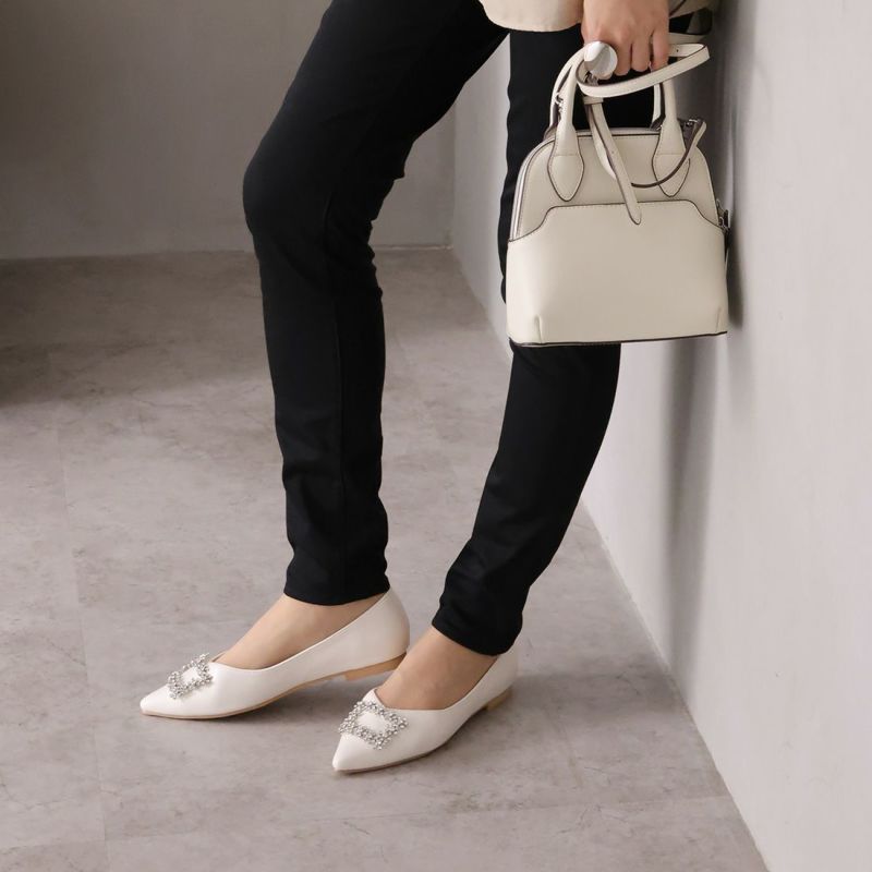 ・フラットでもポインテッドトゥ×Vカットで甘くなりすぎず上品なシルエット