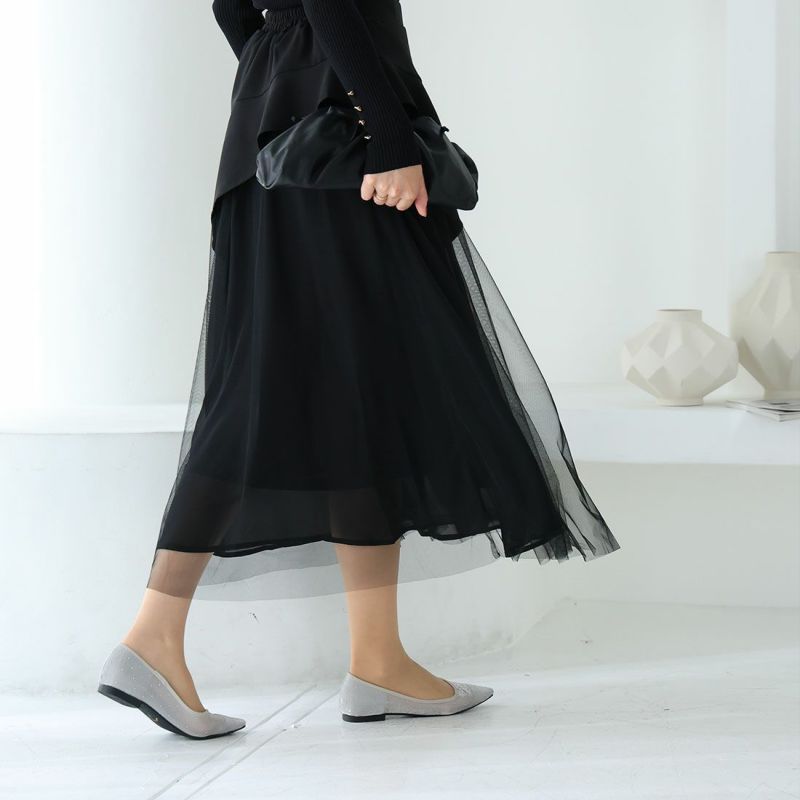 ・チュール素材で程よい抜け感をプラスし、軽やかな印象に。