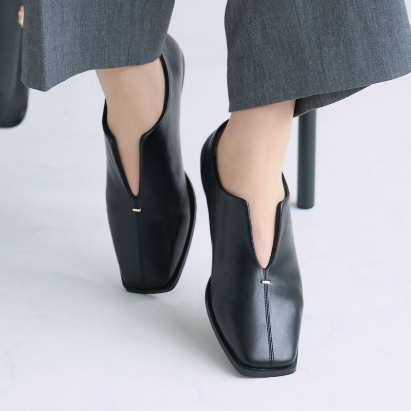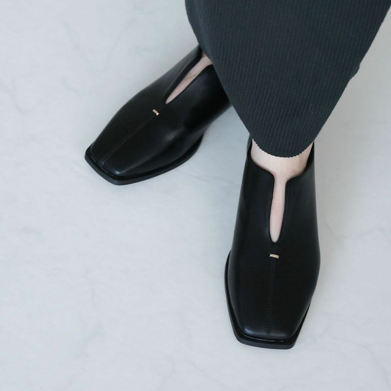 ・存在感のあるスクエアトゥから覗くソール使いでエッジの効いたマニッシュ感たっぷりな大人な1足。