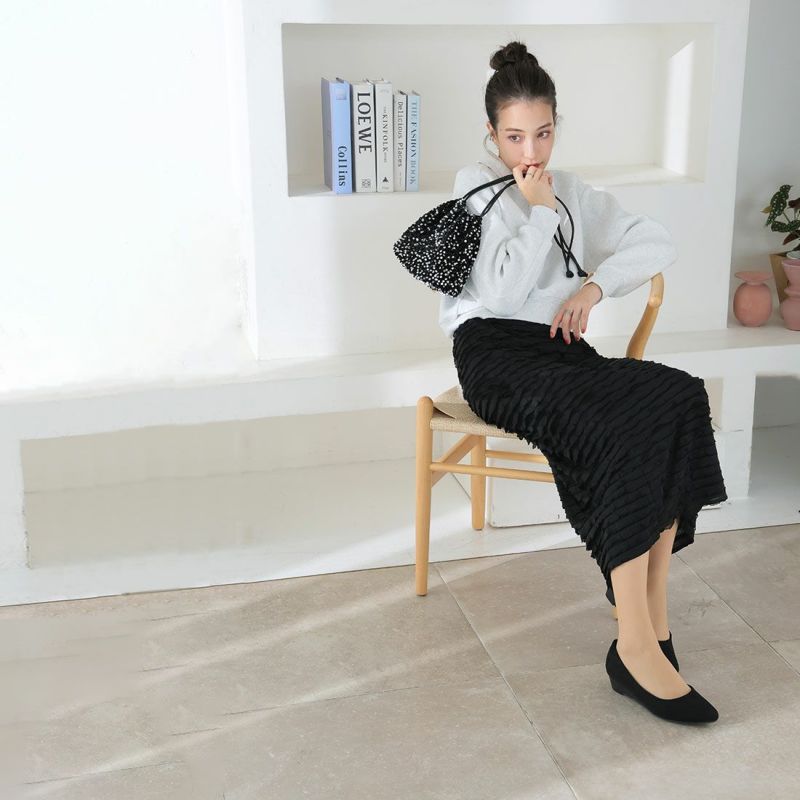 ・3.5cmローウェッジヒール×アーモンドトゥで、脚をキレイに見せてくれてスタイルアップが叶う!