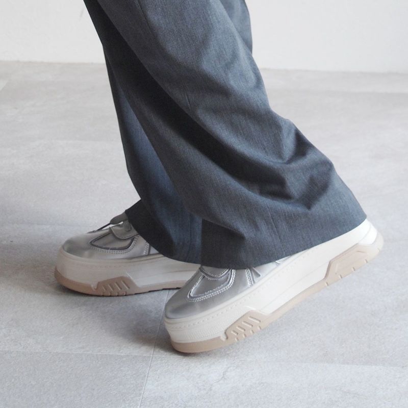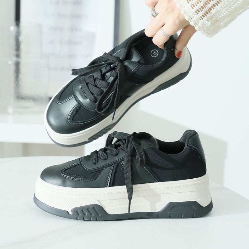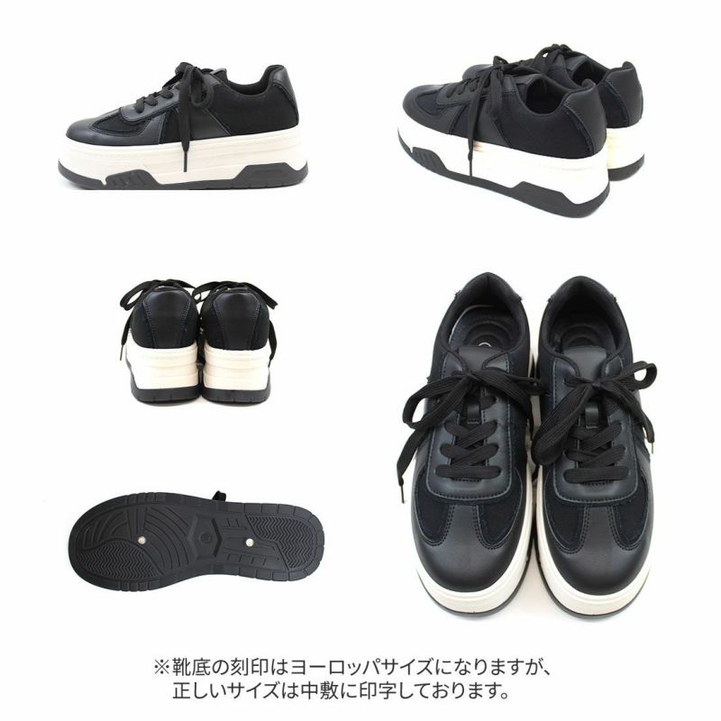 ・異素材コンビカラーの厚底Tトゥデザインレースアップスニーカー!