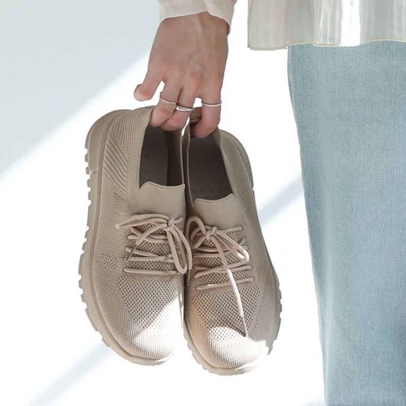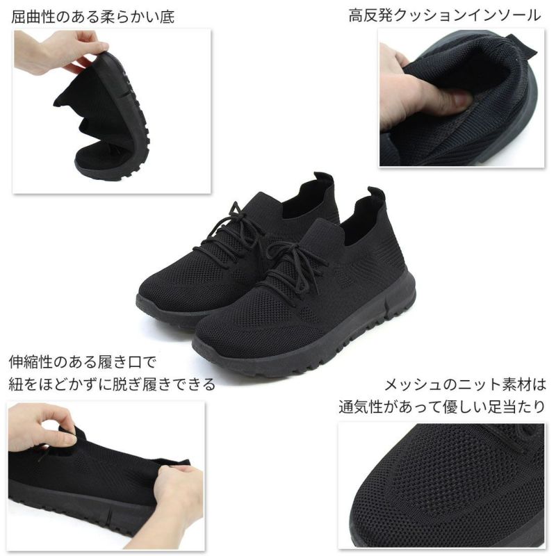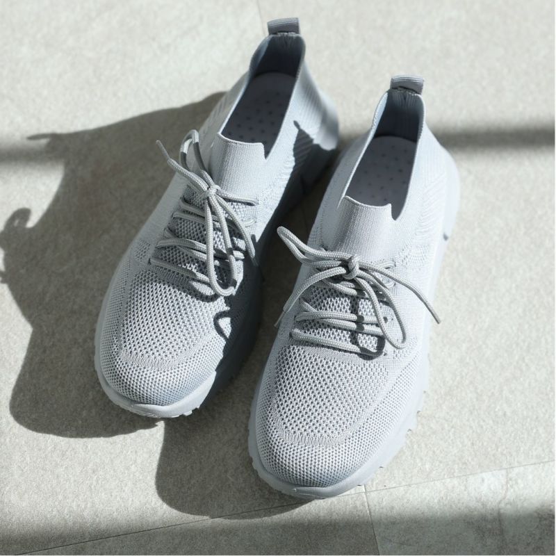 ・伸縮性のある履き口で紐をほどかずにスリッポン感覚で脱ぎ履きラクチン!