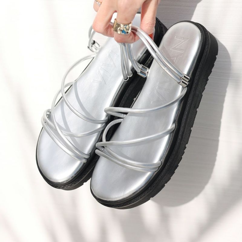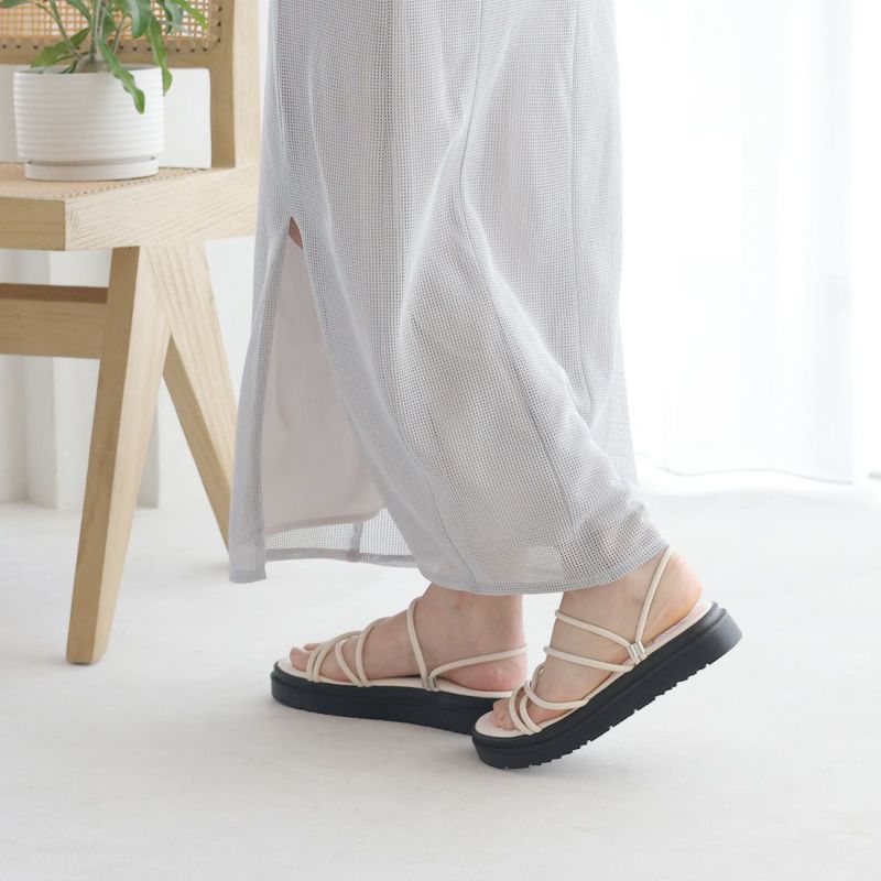 ・シアーな華奢ストラップ&トレンドフォルムで旬の足元に。