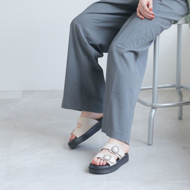 ・高級感のあるビジューバックルは、いつものコーデに合わせるだけでエレガントさをプラス。
