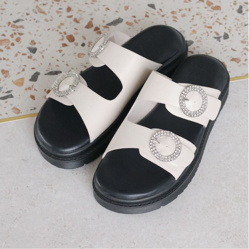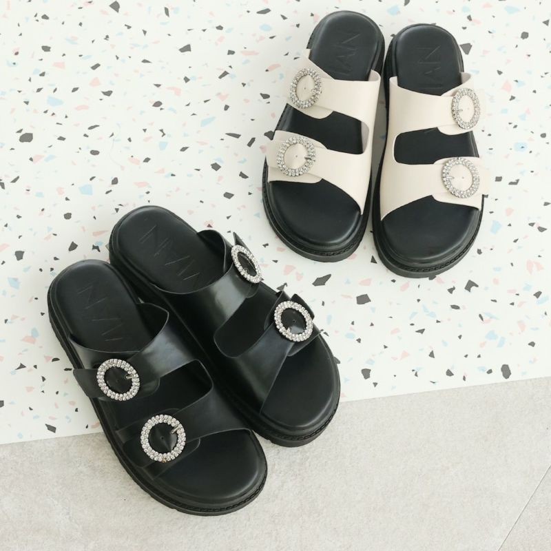 ・2つのキラキラビジューバックルが輝く主役級アイテム!