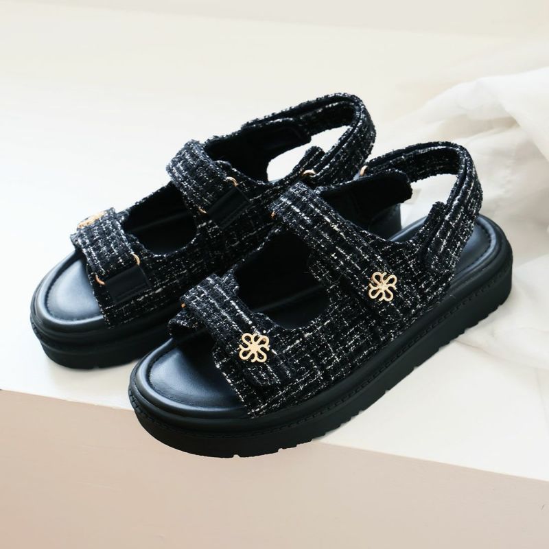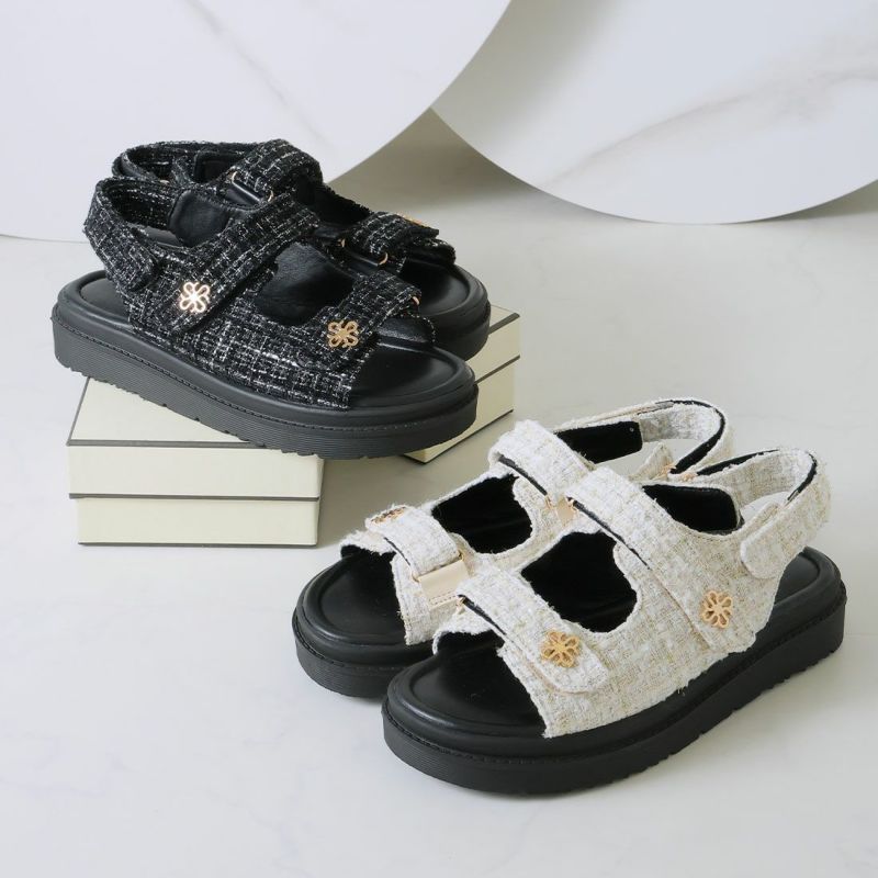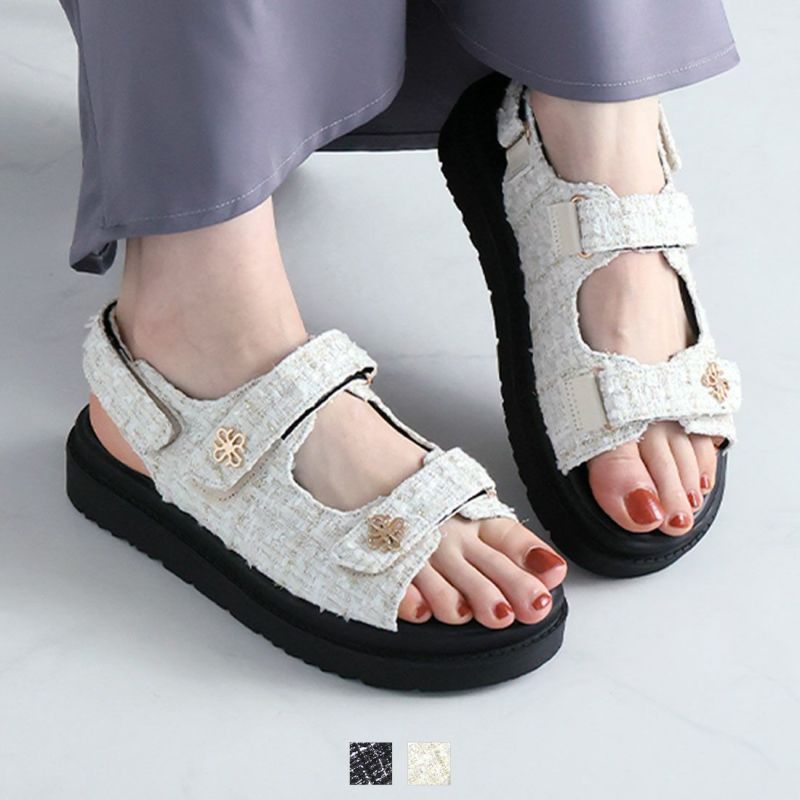 ・ツイード素材とゴールドモチーフで大人っぽい足元に!
