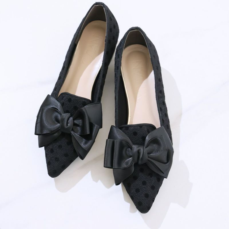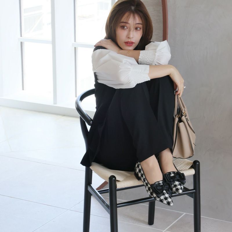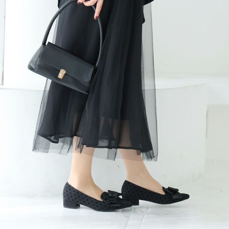 ・ポインテッドトゥ×ローヒールで甘くなりすぎない上品フォルム。
