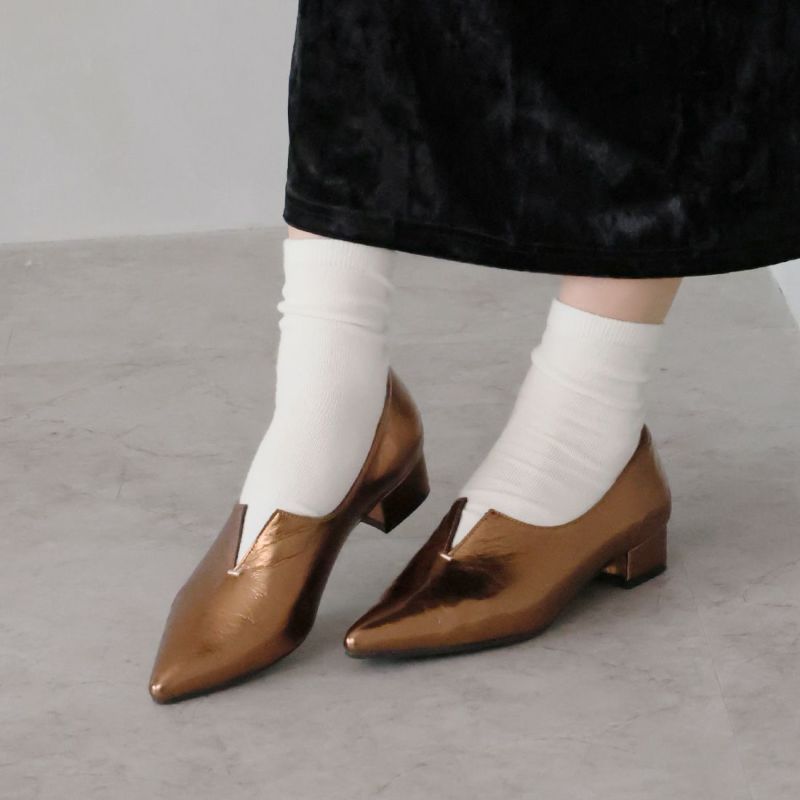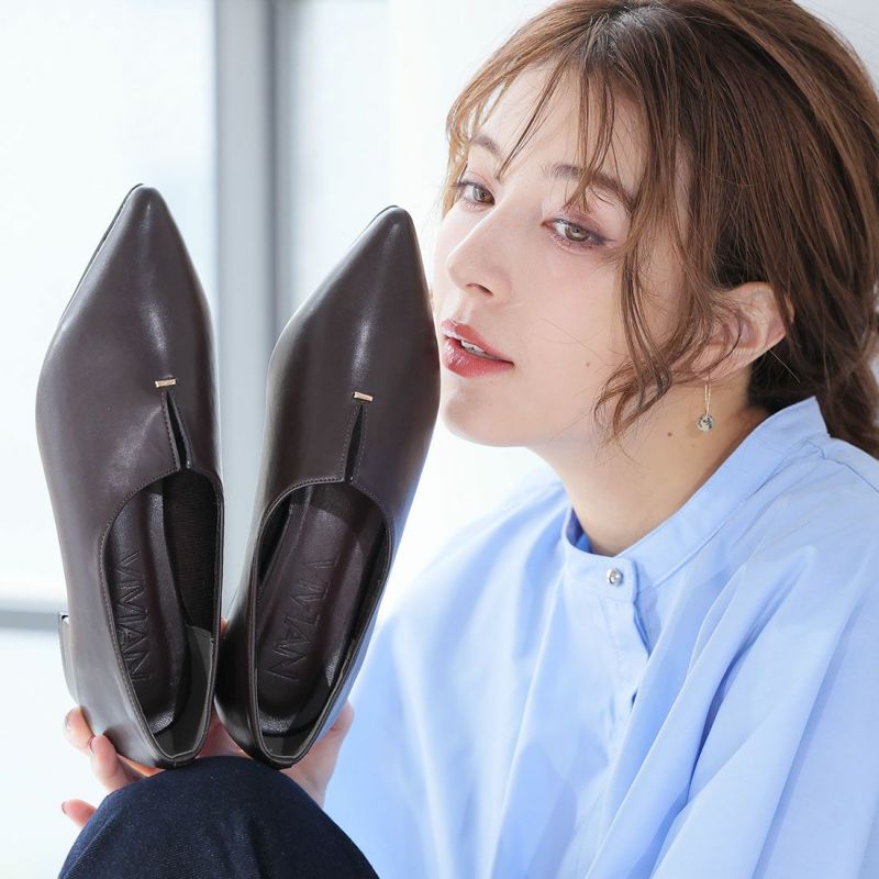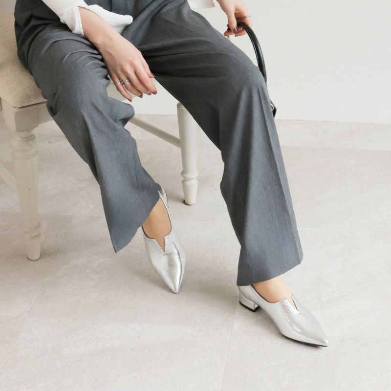 ・ポインテッドトゥ×ローヒールで甘くなりすぎない上品フォルム。