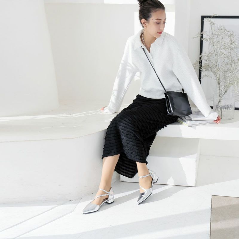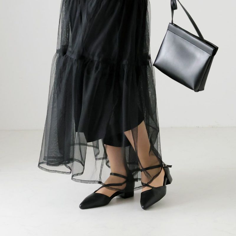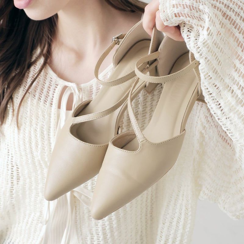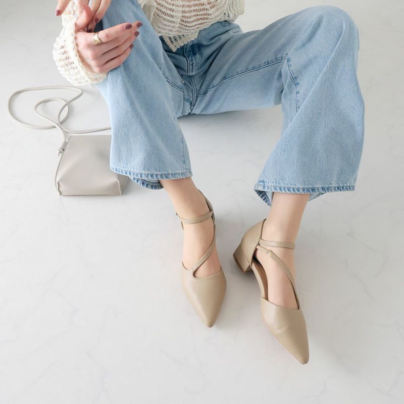 ・ポインテッドトゥ×ローヒールで甘くなりすぎない上品フォルム。
