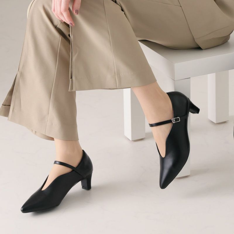 ・5cmプレートヒール×ポインテッドトゥで、脚をキレイに見せてくれてスタイルアップが叶う!