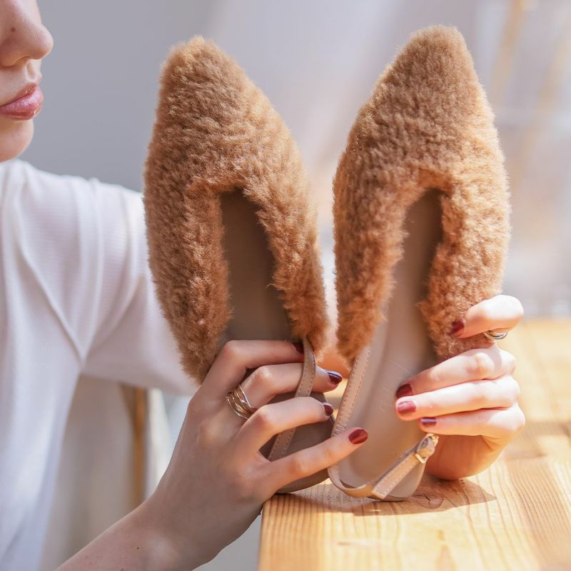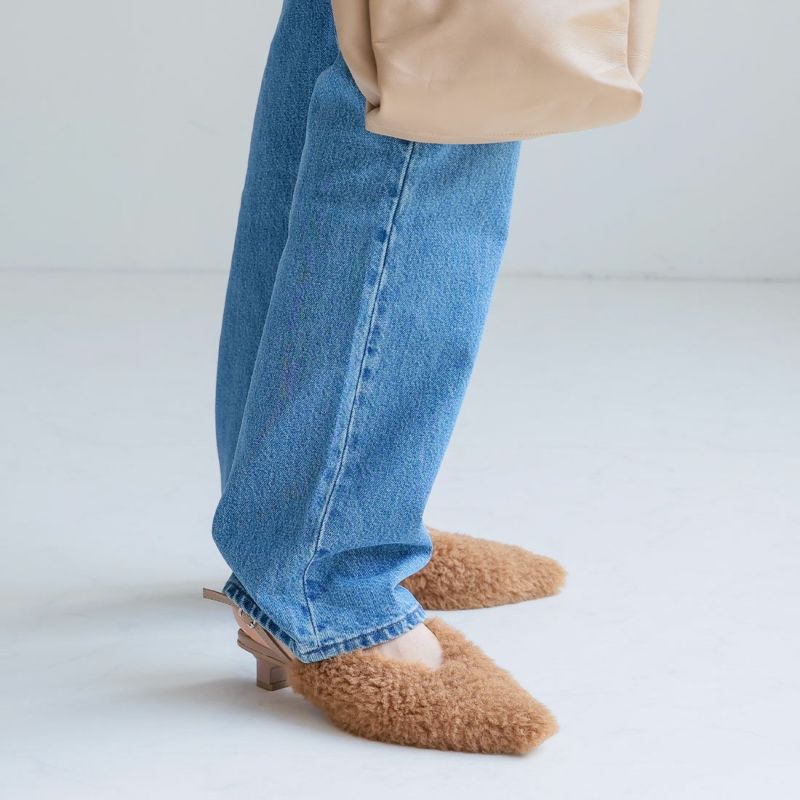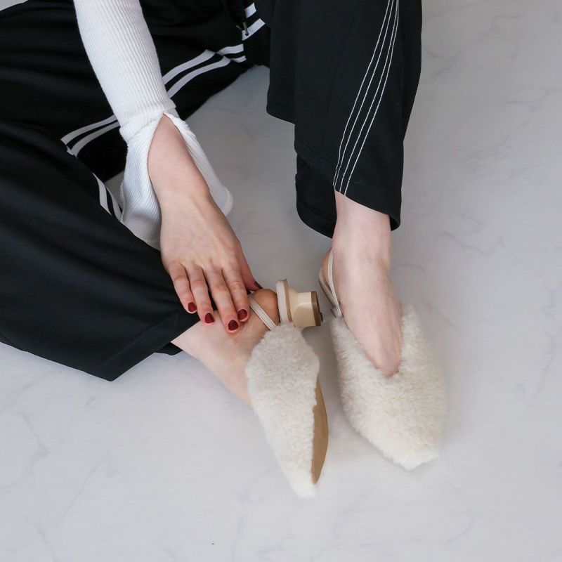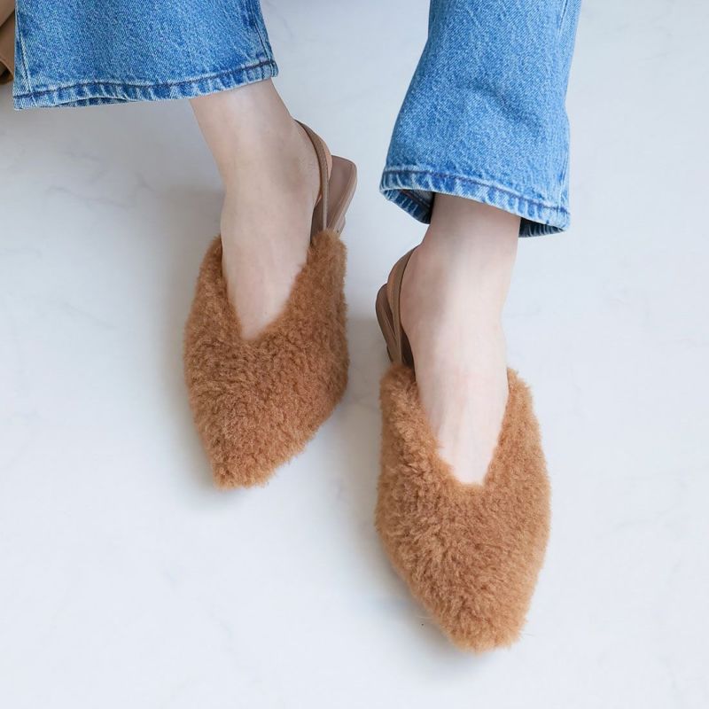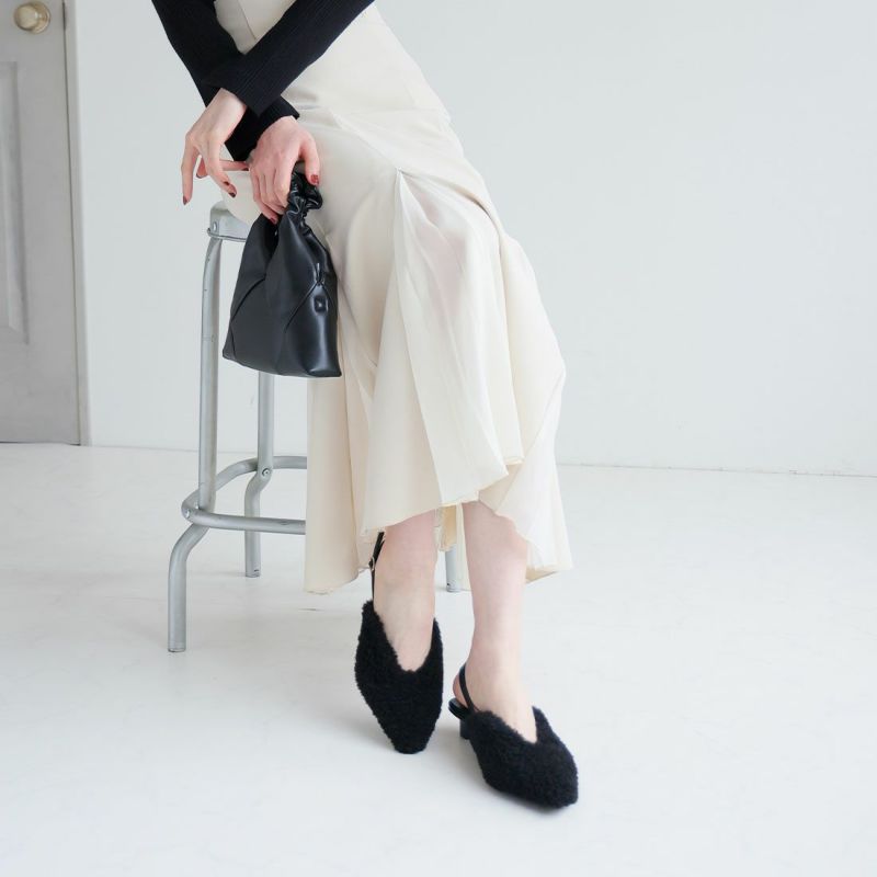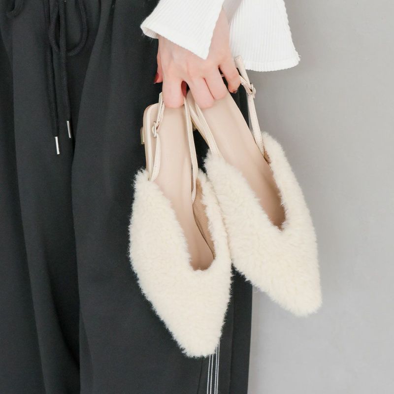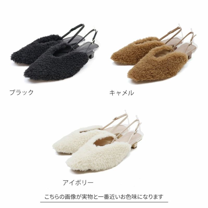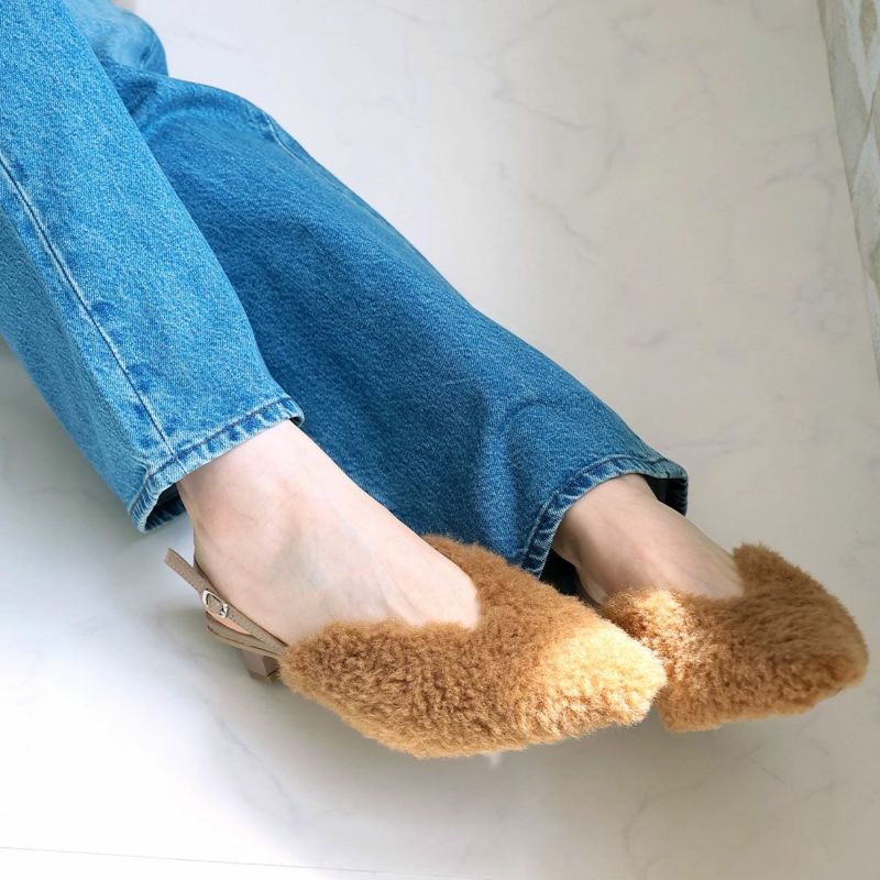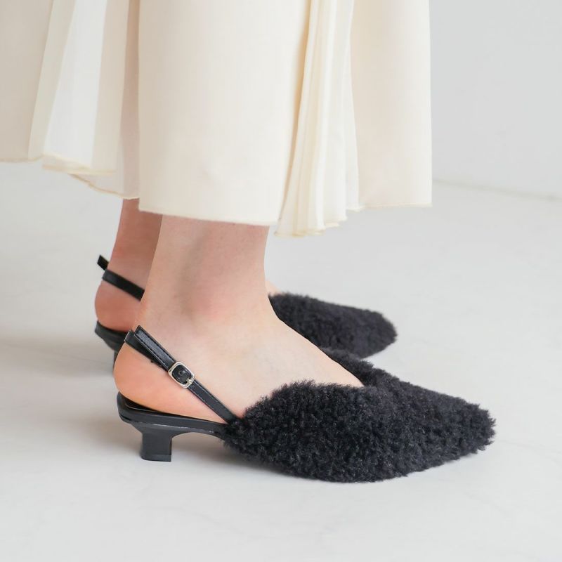 ・ポリュームのあるもこもこボアが大人カワイイスリングバックパンプス!