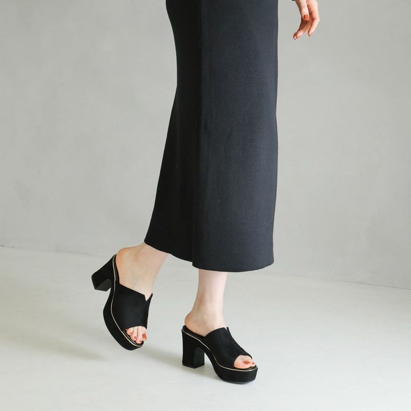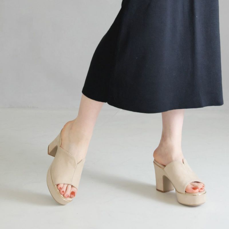 ・スリットデザインがアクセントの厚底ミュールサンダル!