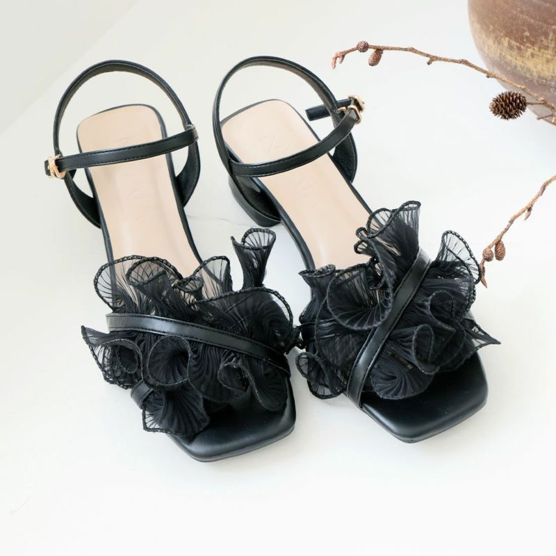 ・ボリュームのシアーフリルが華やかなストラップサンダル!