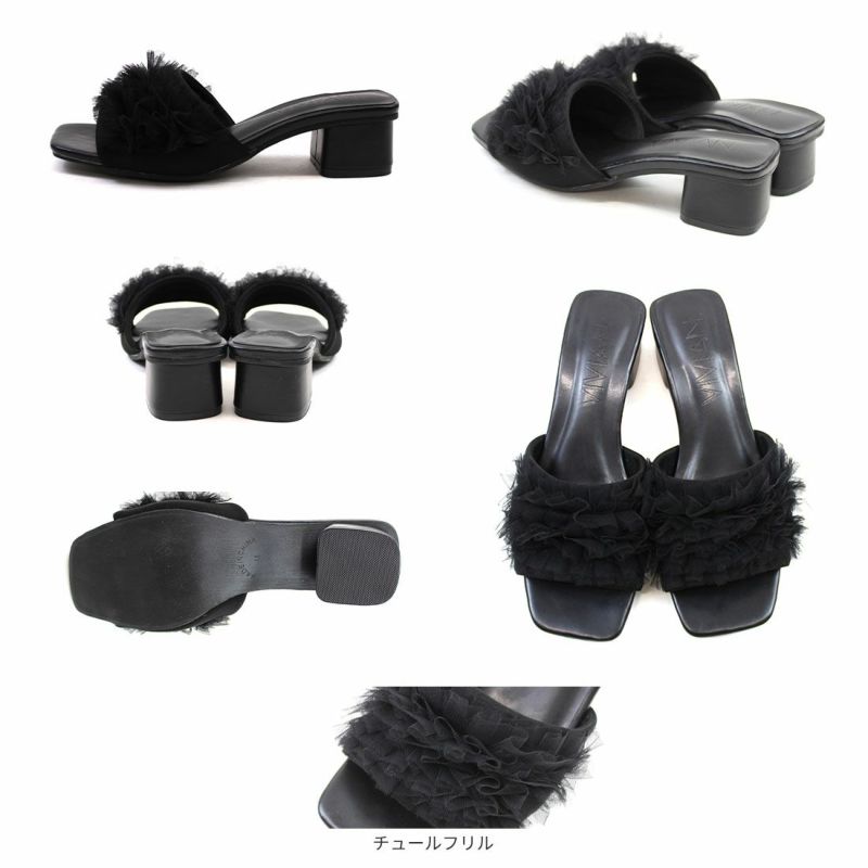 ・定番のミュールデザインも華やかなフリルチュールで大人の抜け感漂う足元に!