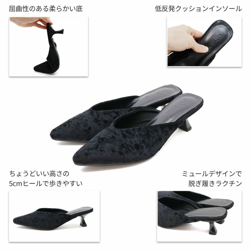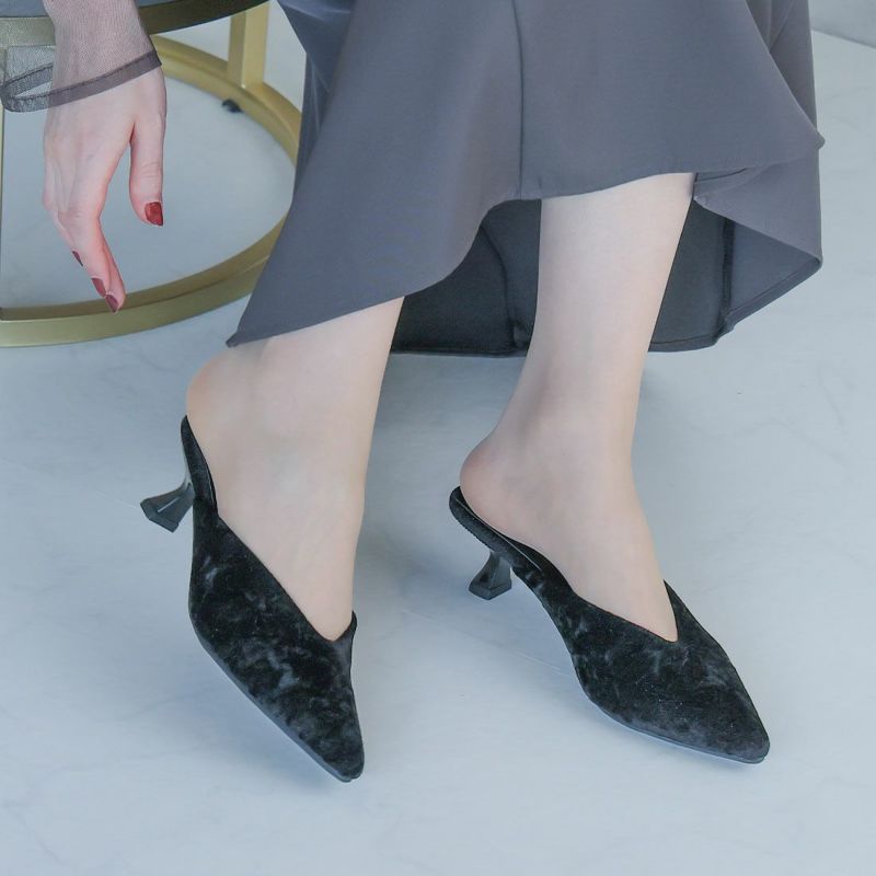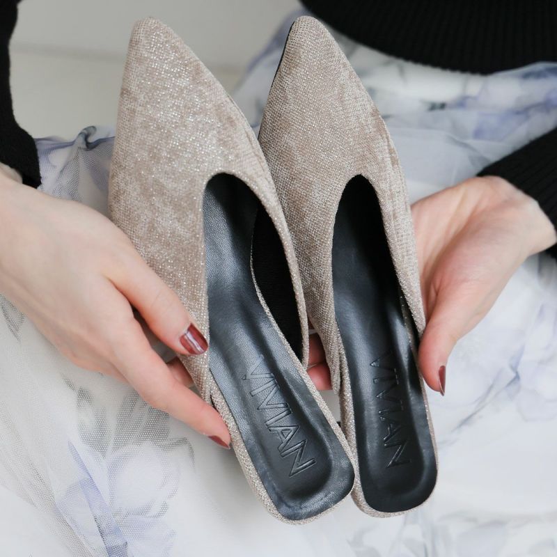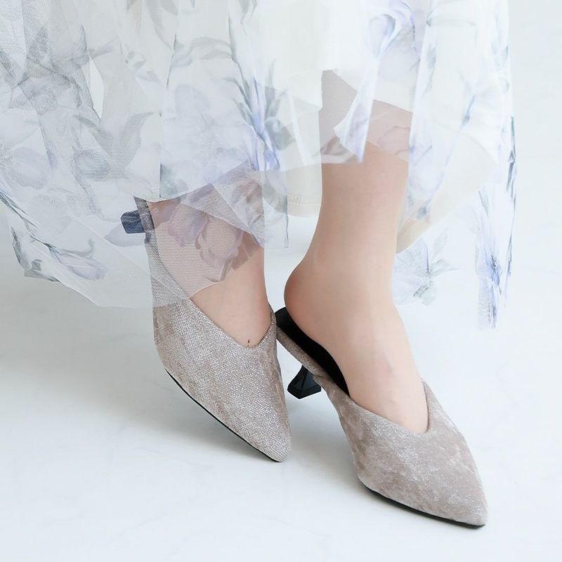 ・キラキラのラメ入りベロア素材が目を引く主役級ミュール!