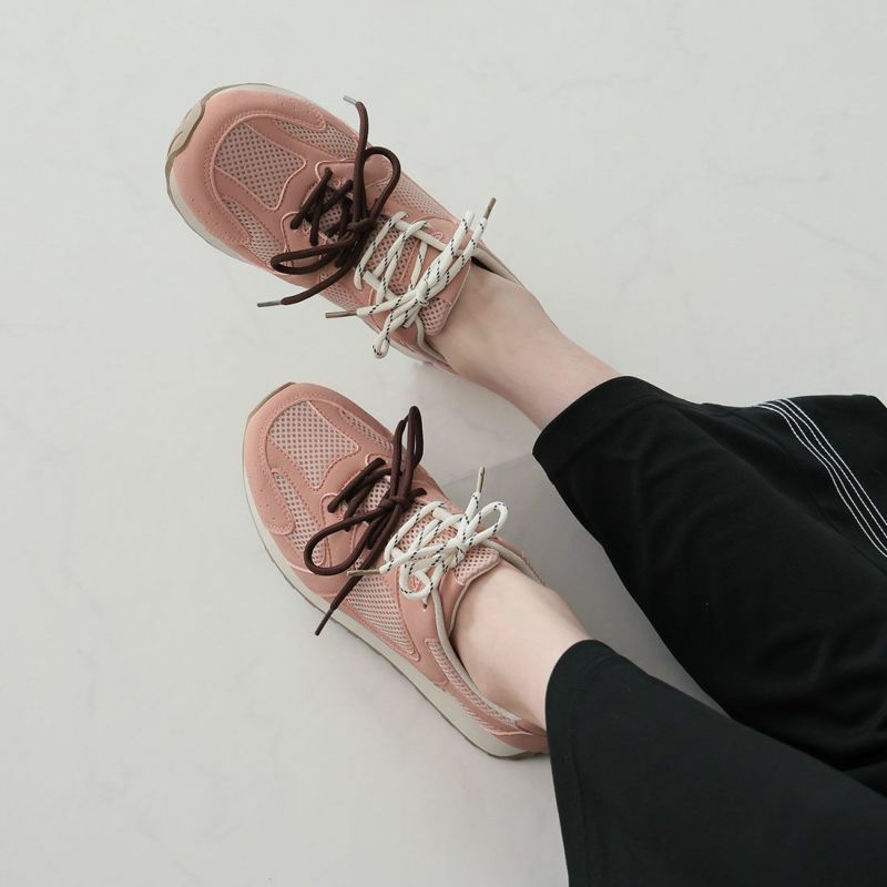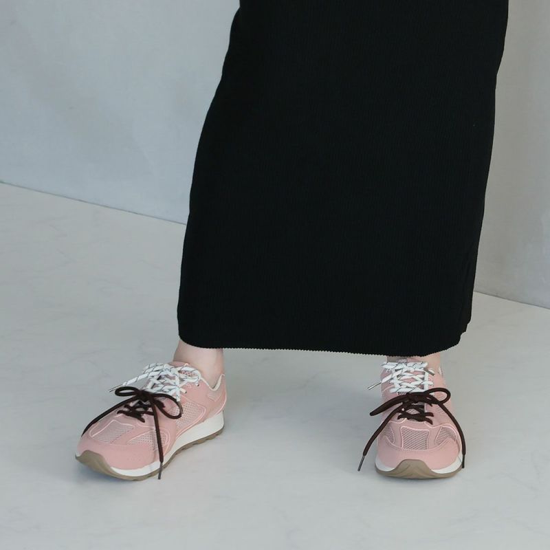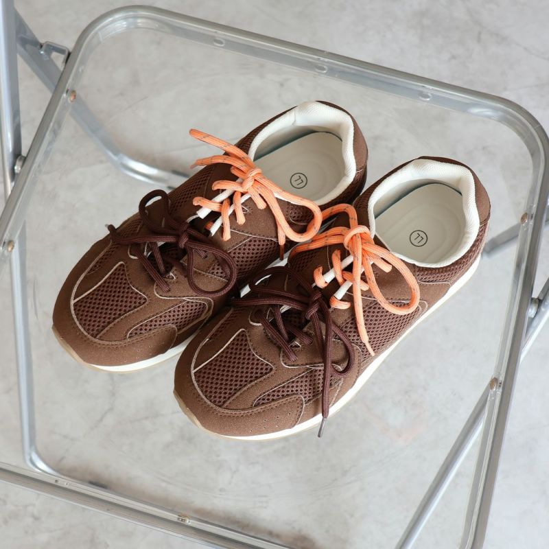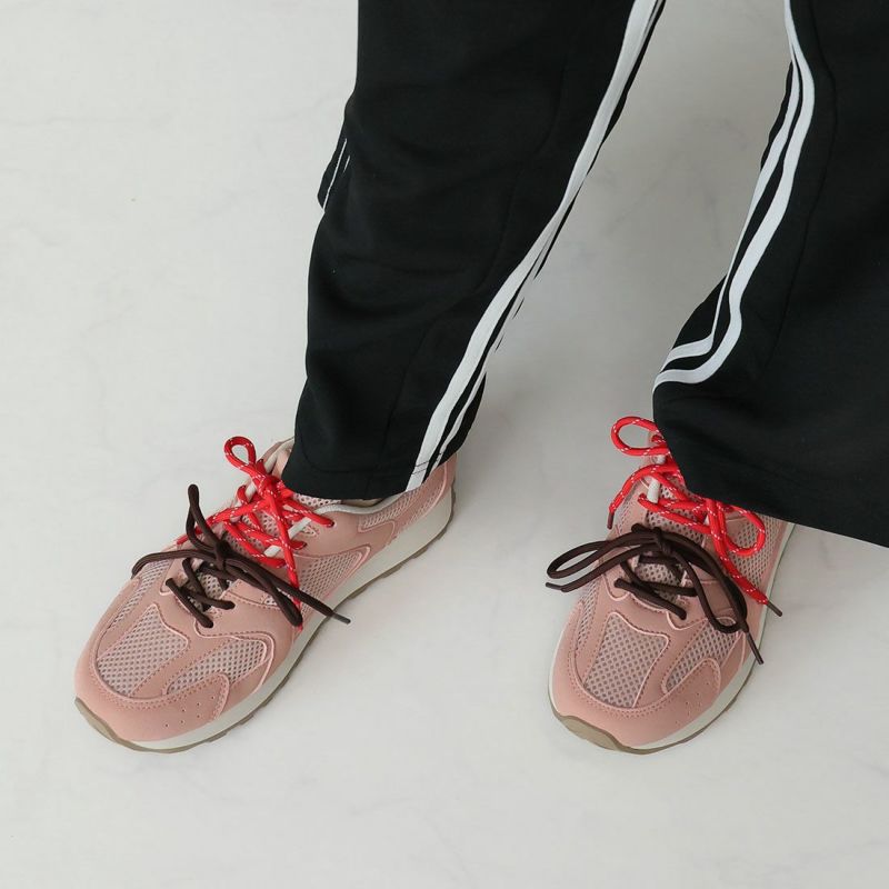 ・配色が異なる靴ひもでコーデにアクセントを加え、足元から個性を演出。