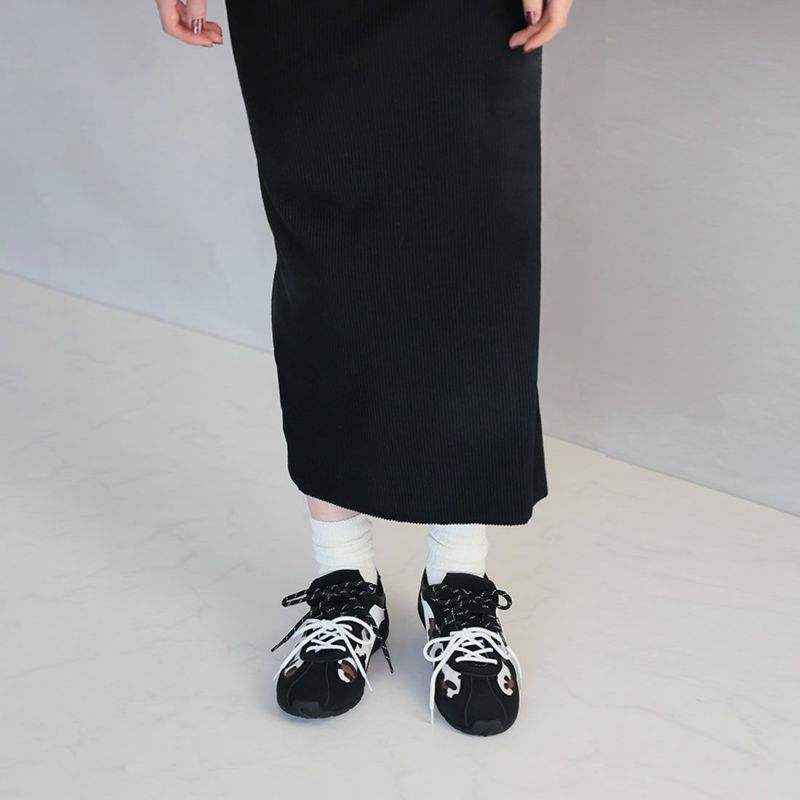 ・ダブルのシューレースリボン×折り返しフラップ×レオパード柄×Tトゥデザインでトレンド詰め込み系スニーカー
