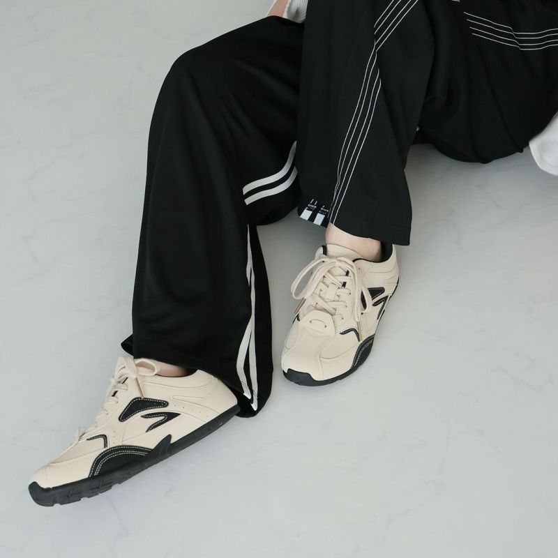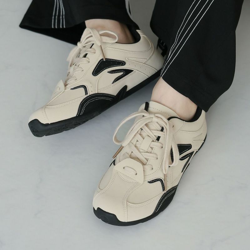 ・異素材×バイカラーデザインが、足元に“今っぽさ”をプラスしてくれるレースアップスニーカー!