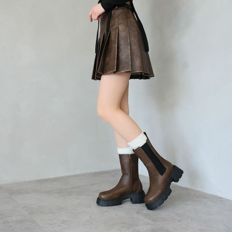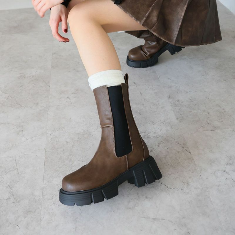 ・圧倒的な存在感を放つ重ためのディテールが今っぽい!ゴツめサイドゴアミドルブーツ!