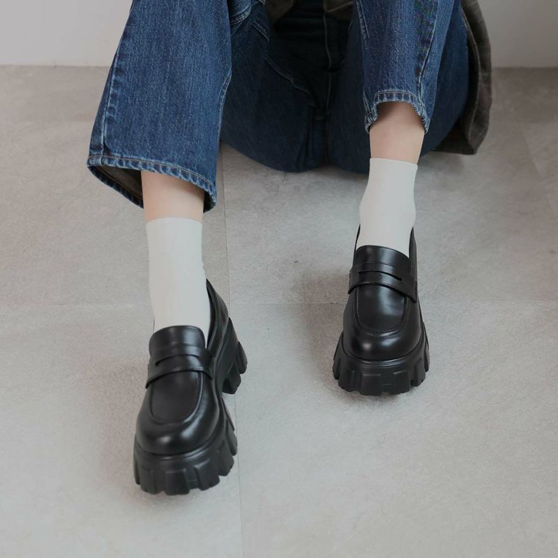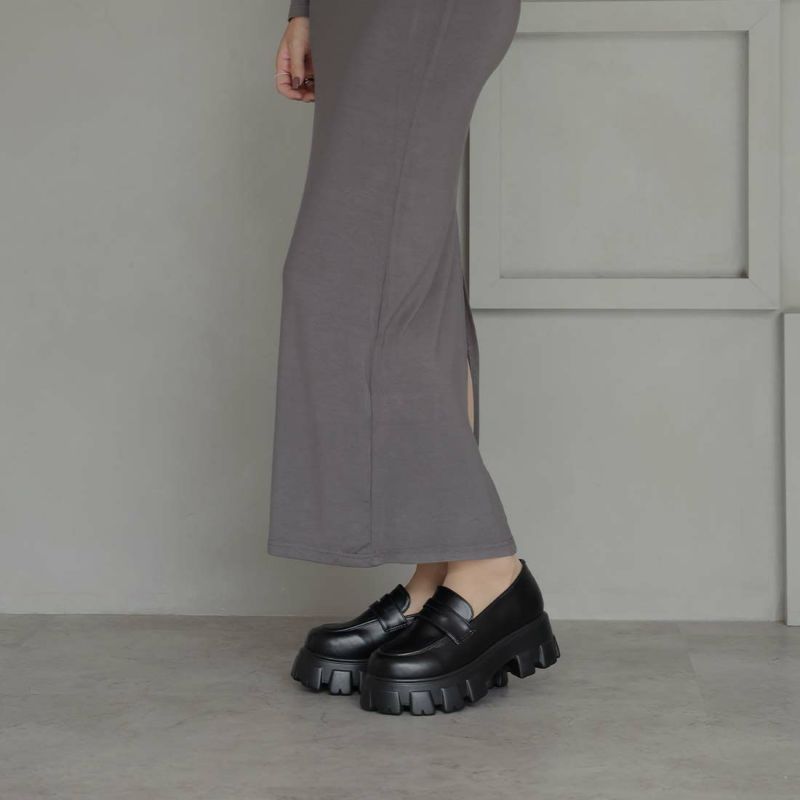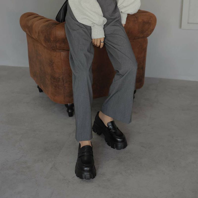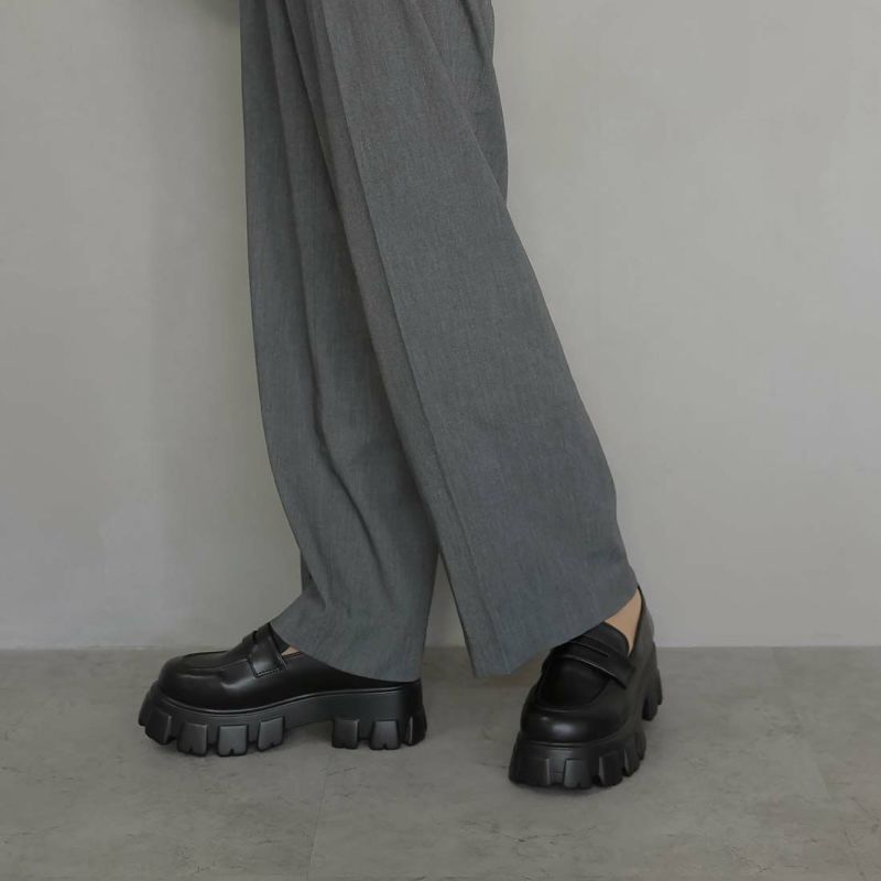 ・定番のコインローファーもトレンドの厚底デザインでハンサムライクな主役級アイテムに。