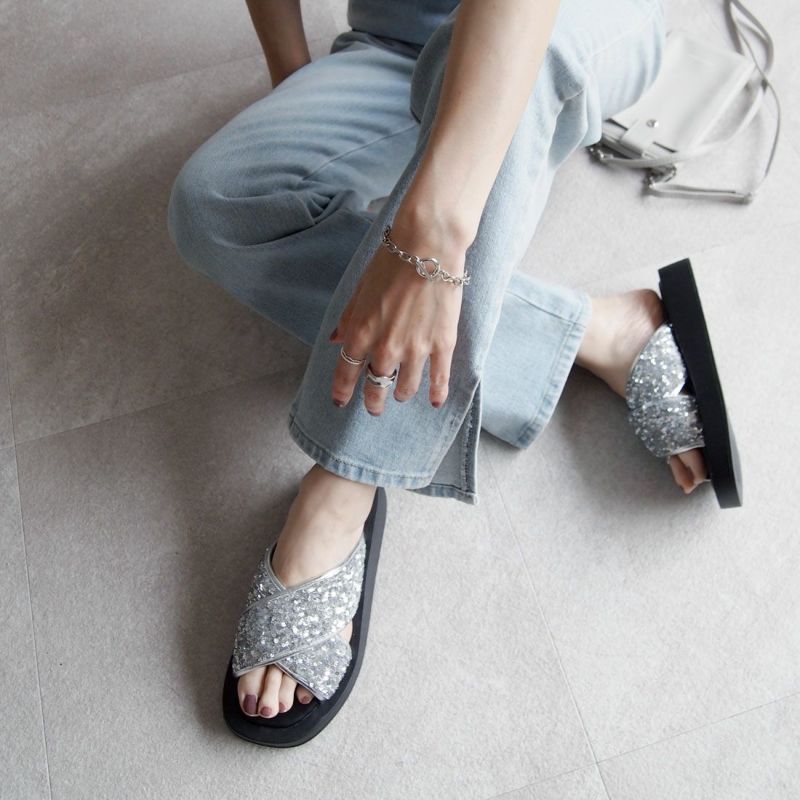 ・スパンコールの輝きをプラスした主役級キラキラクロスバンドサンダル