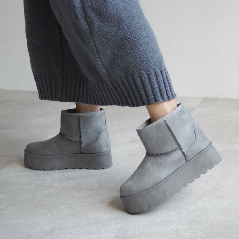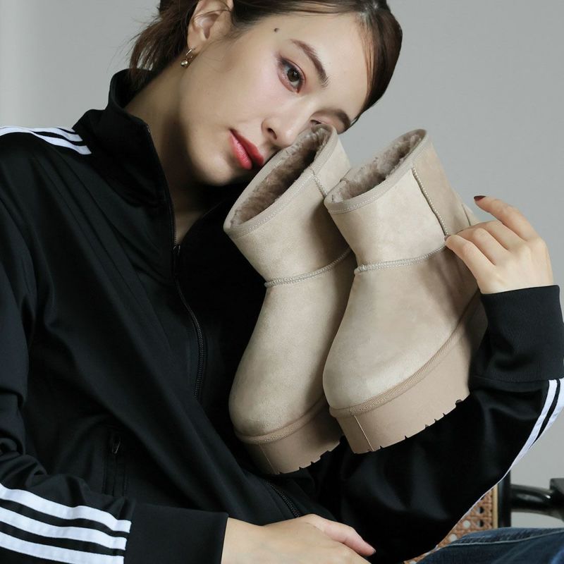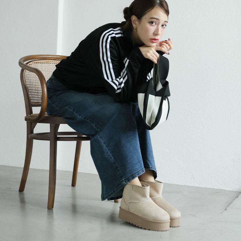 ・冬の定番!あったかムートンブーツも厚底で今っぽいシルエット!
