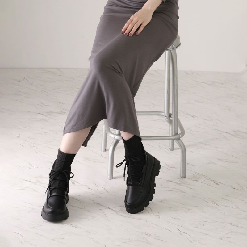 ・ボリュームのあるトラックソール×ニット素材でスタイルアップ!