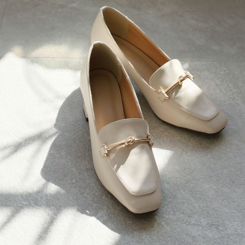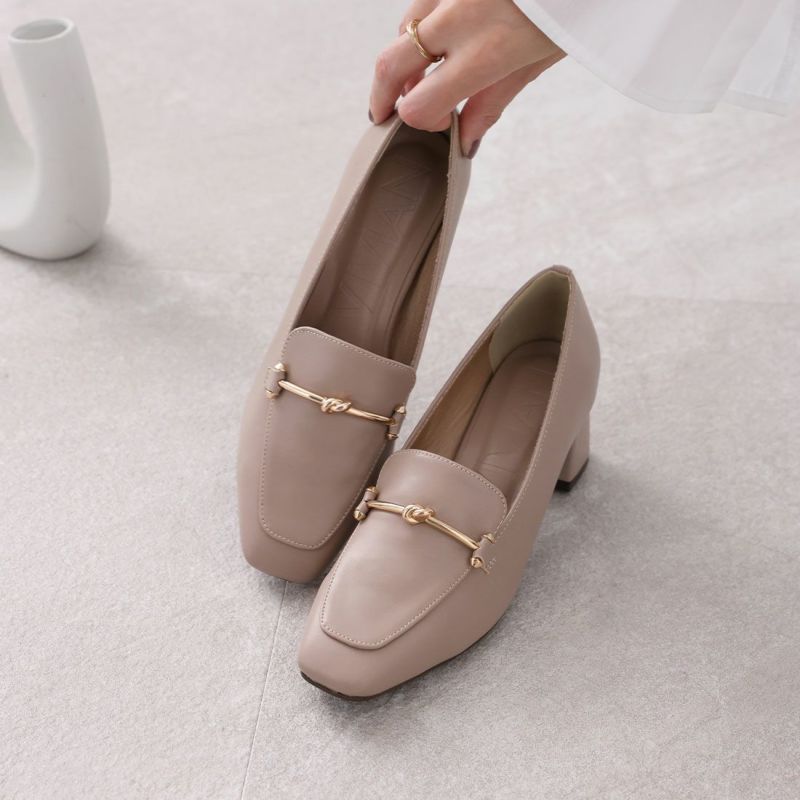 ・スクエアトゥ×ブロックヒールで甘くなりすぎない上品フォルム