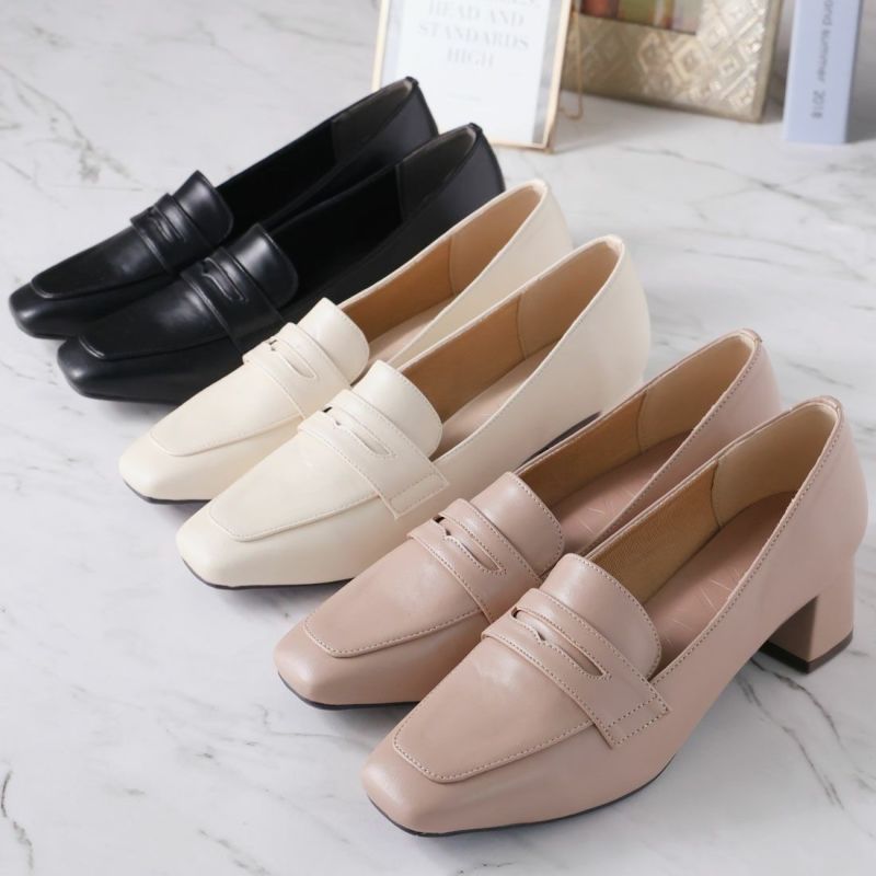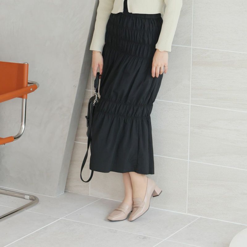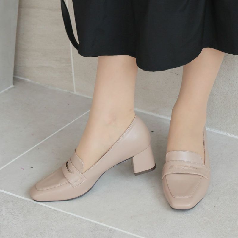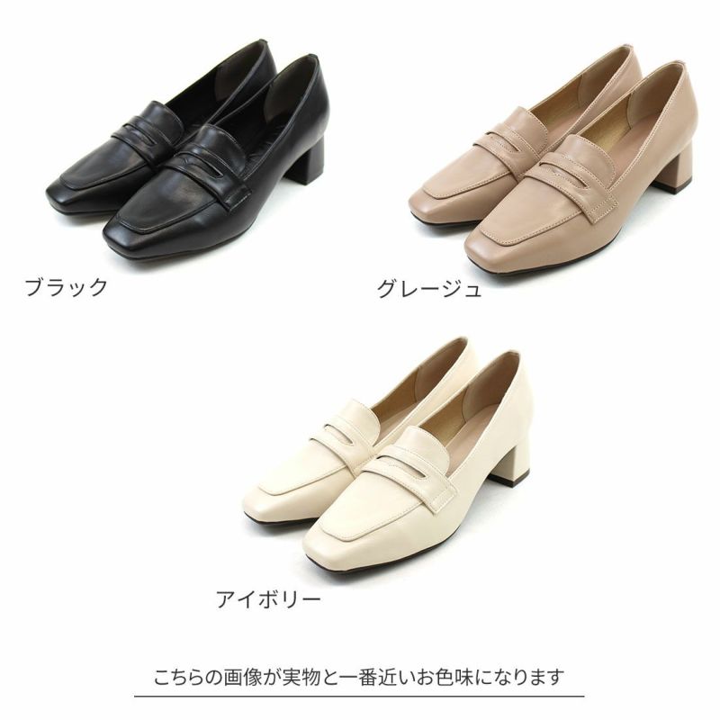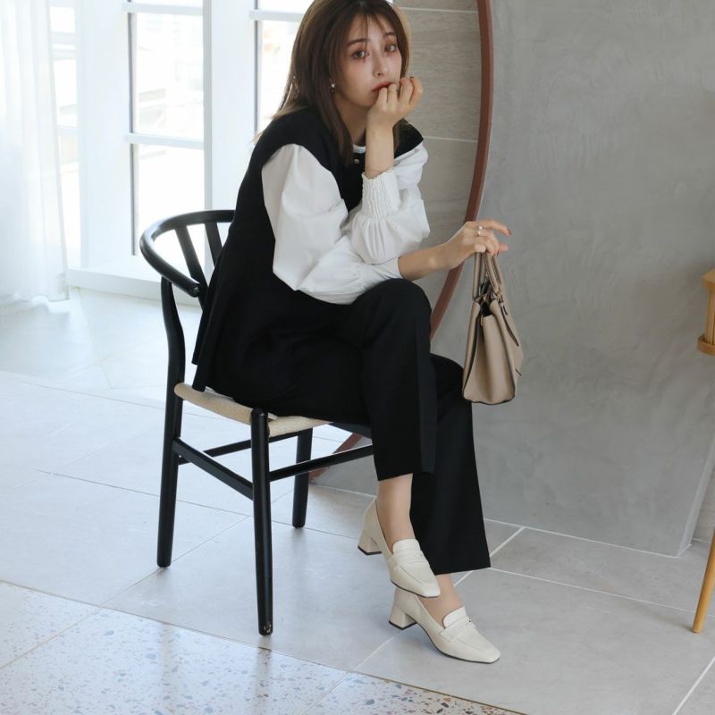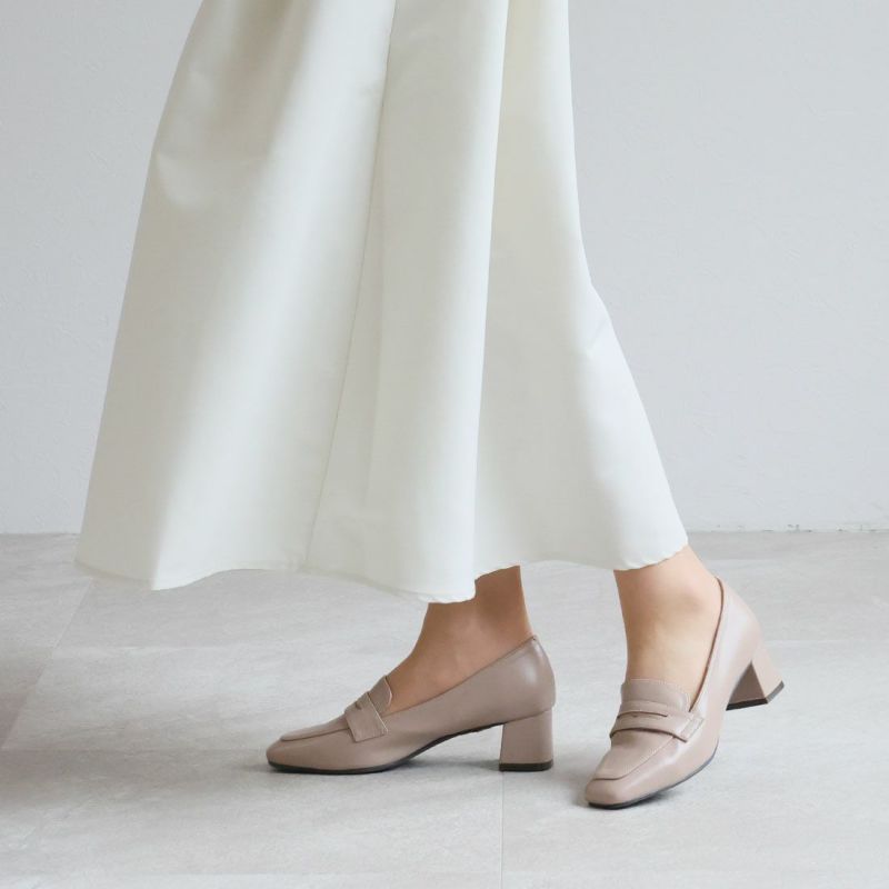 ・スクエアトゥ×ブロックヒールで甘くなりすぎない上品フォルム。