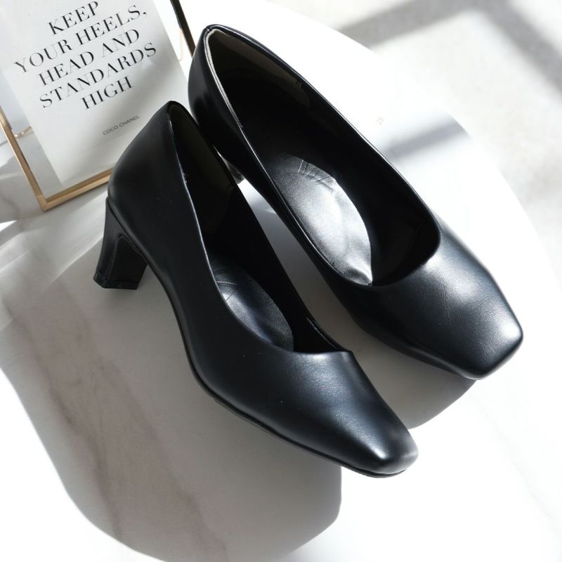 ・5cmプレートヒール×スクエアトゥでトレンド感のある上品フォルム!