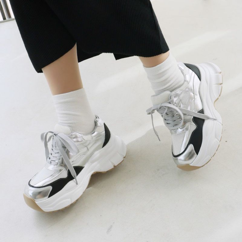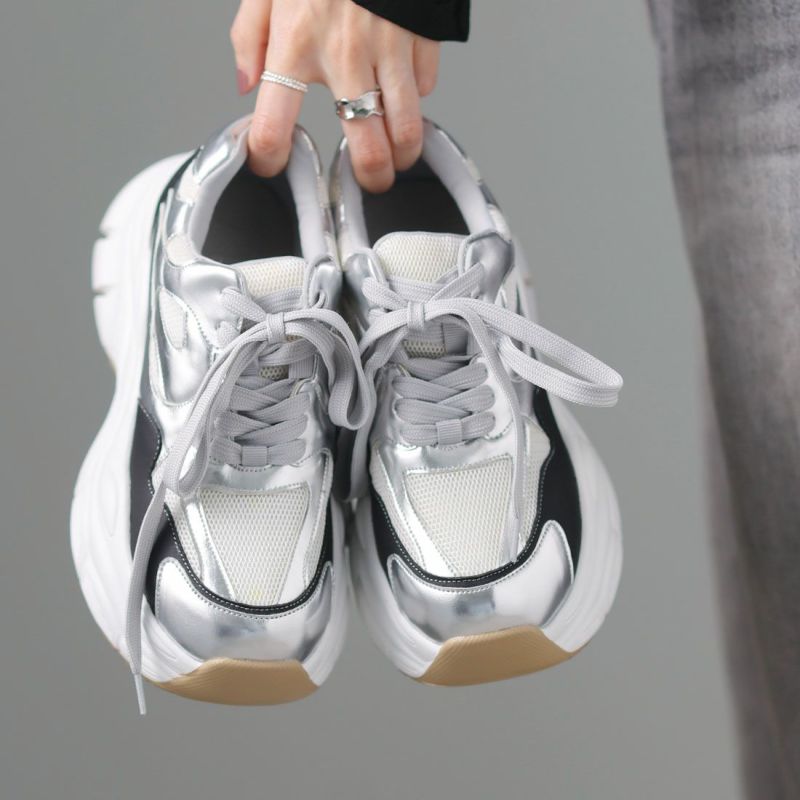 ・異素材コンビがアクセントの大人レースアップダッドスニーカー!