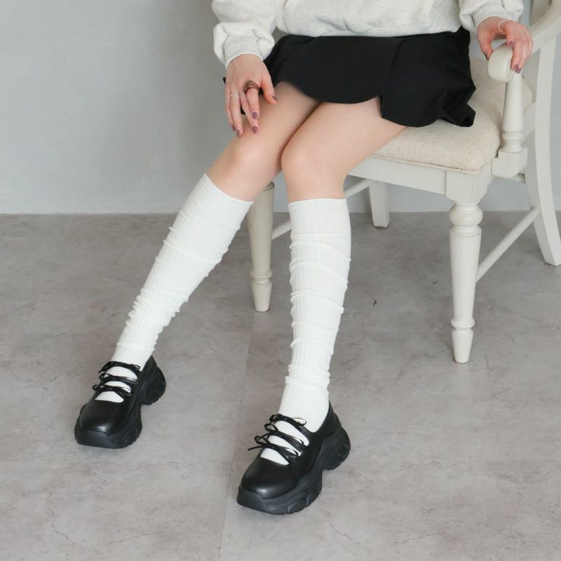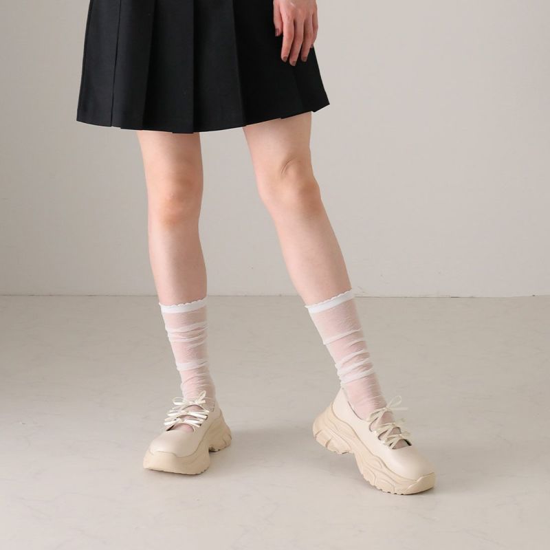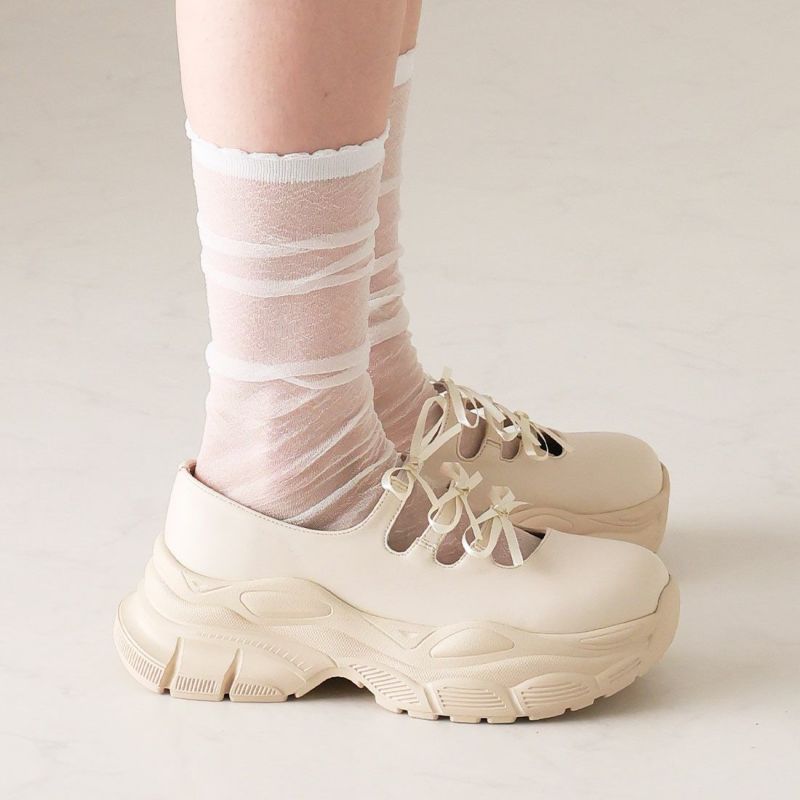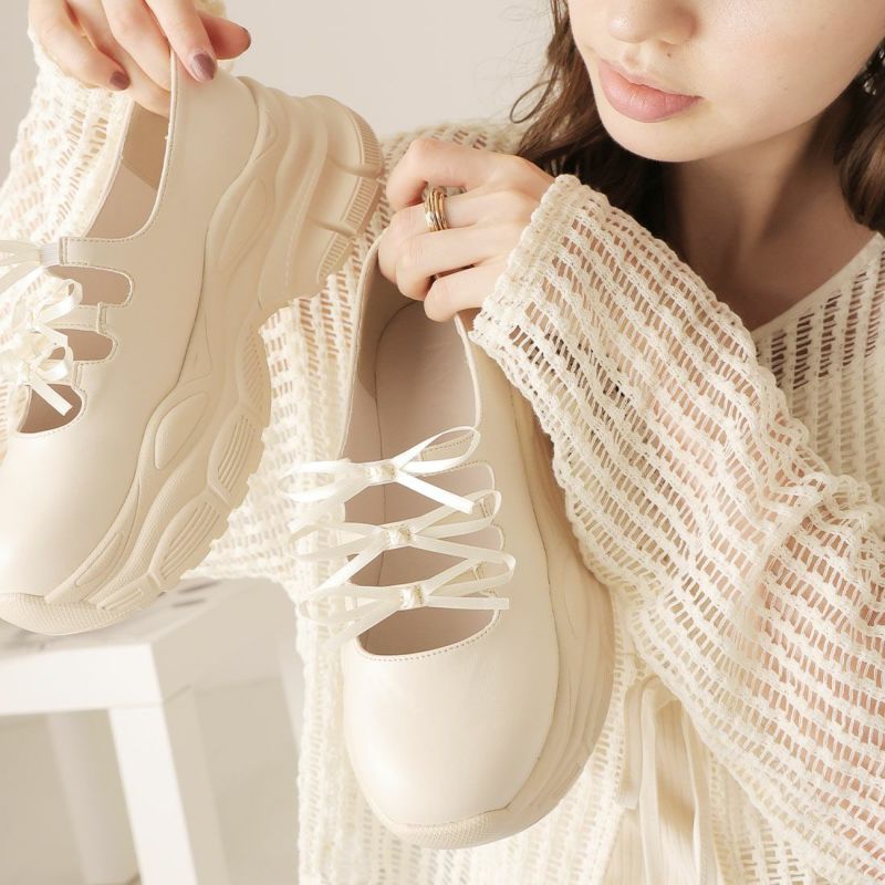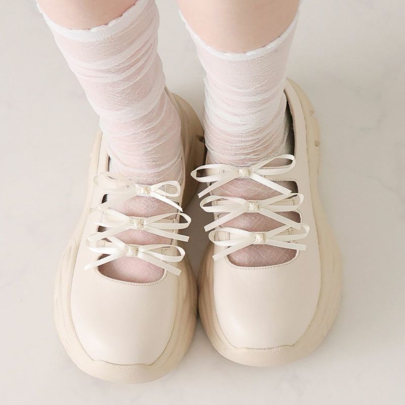 ・ぽってりとしたボリュームソールと3つのミニリボンがポイントの厚底スニーカー